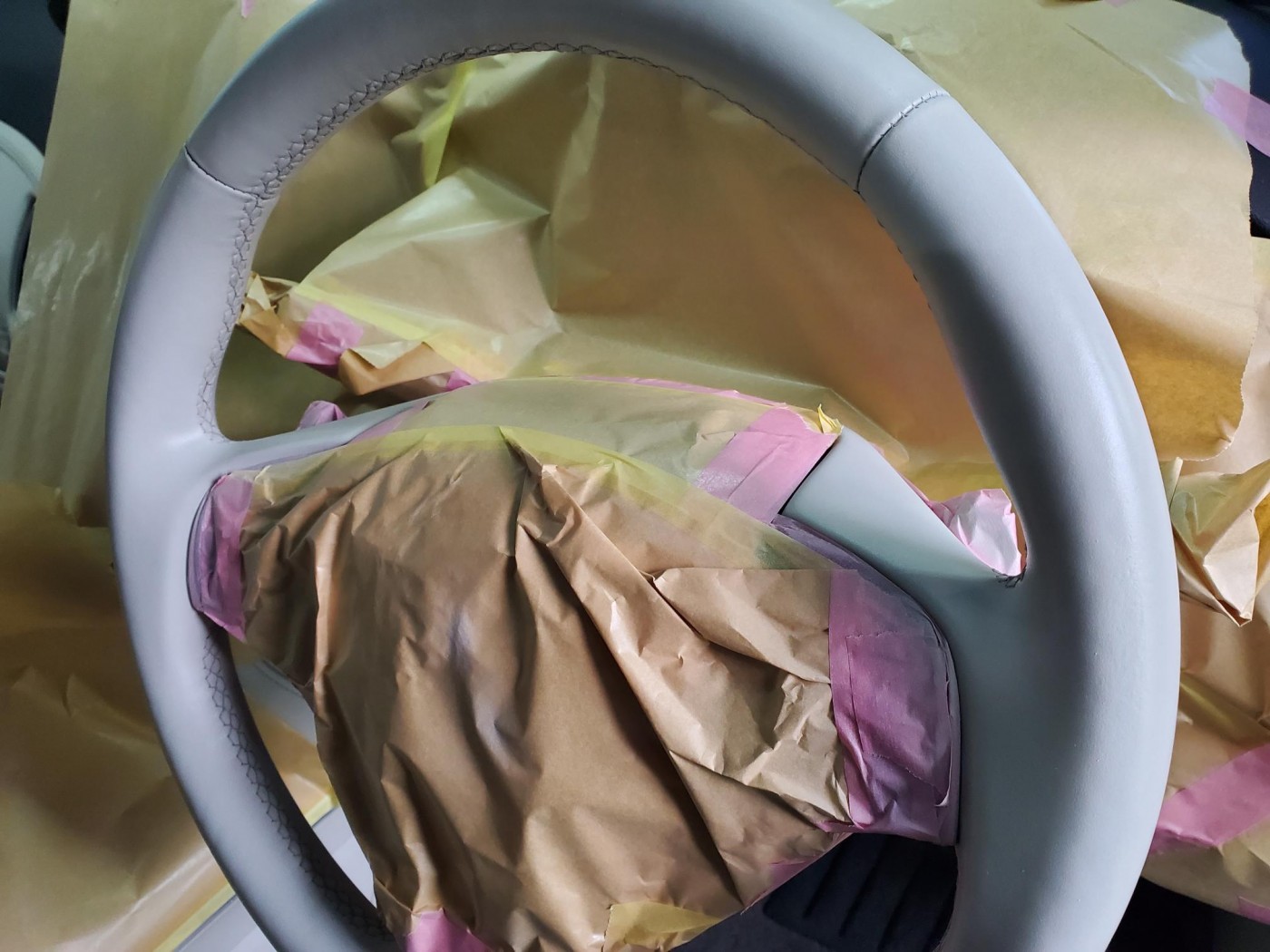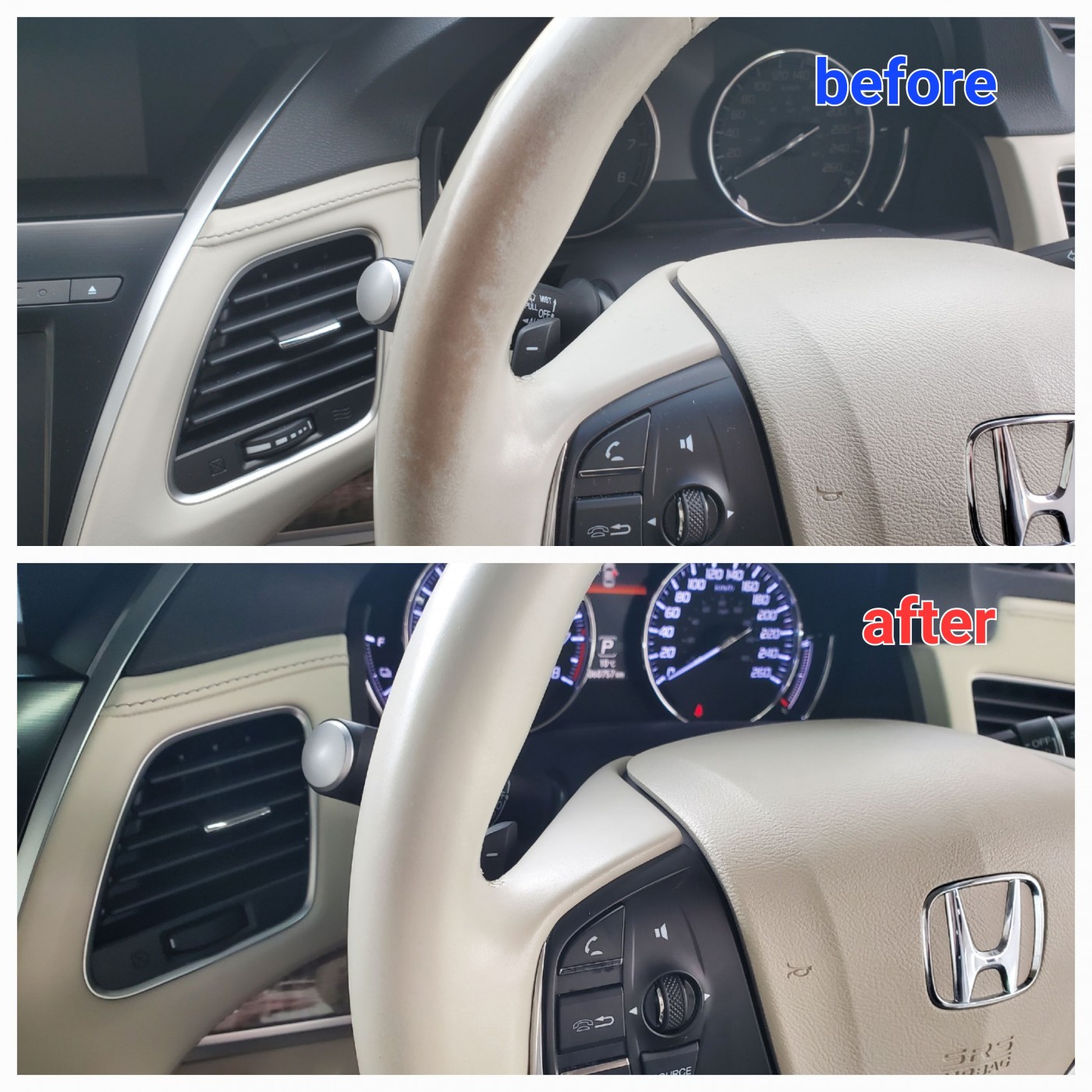 ステアリングが、経年劣化により剥がれ、色落ち、擦り切れ等でお困りのお客様より修復のご依頼をいただきました。