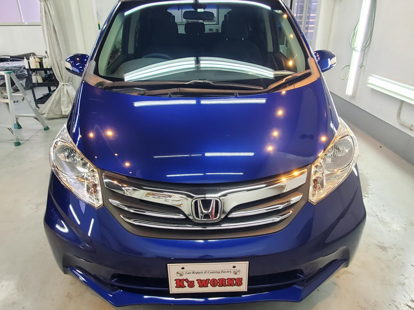 先ずは、表面のハードコートをサンディングして黄ばみ、くすみ、細かな擦り傷をしっかり取り除き、そこから磨き仕上げして最後に皮膜材を塗り込んで施工完了!