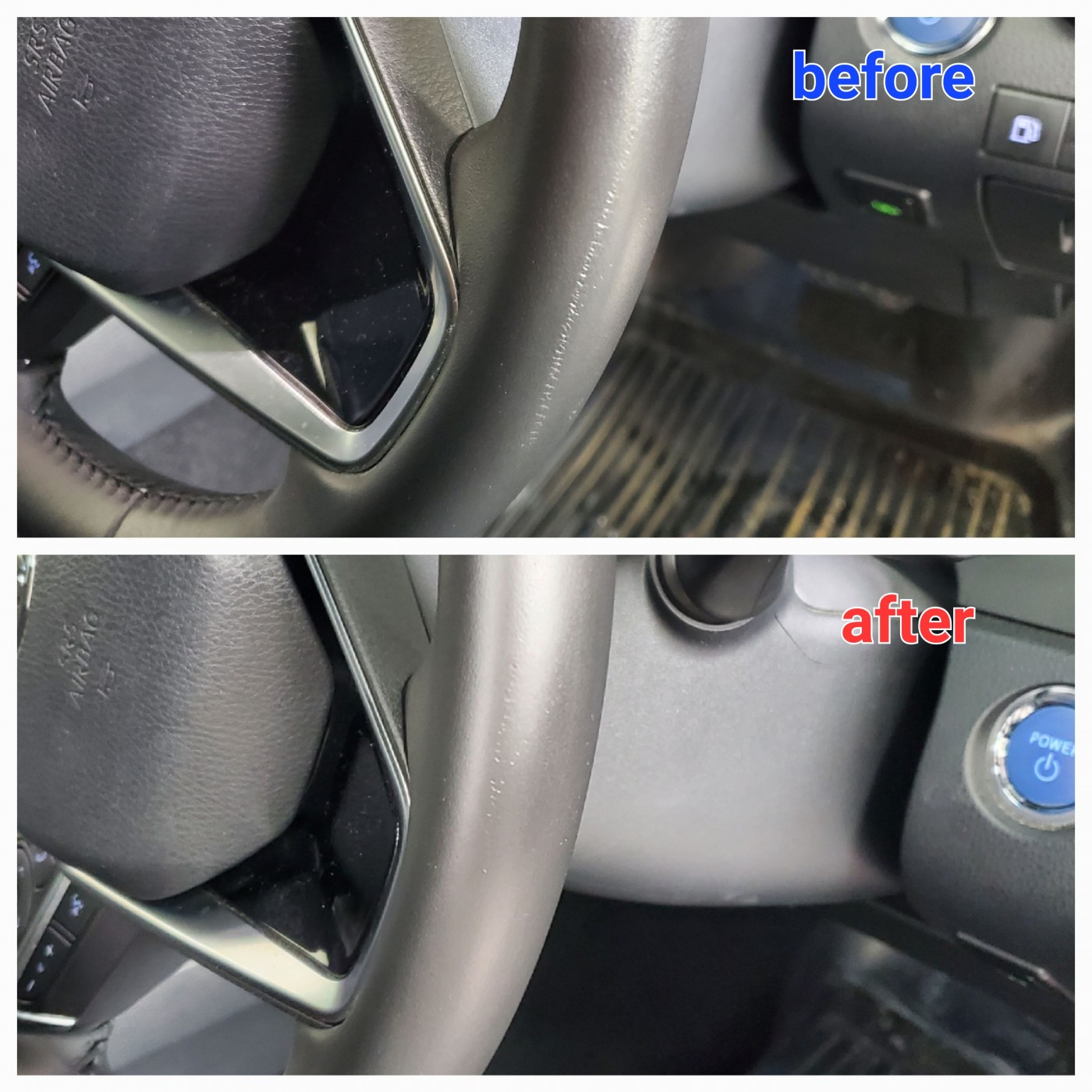 運転中にステアリングに引っかき傷をつけてしまいお困りのお客様よりリペアのご依頼をいただきました。
