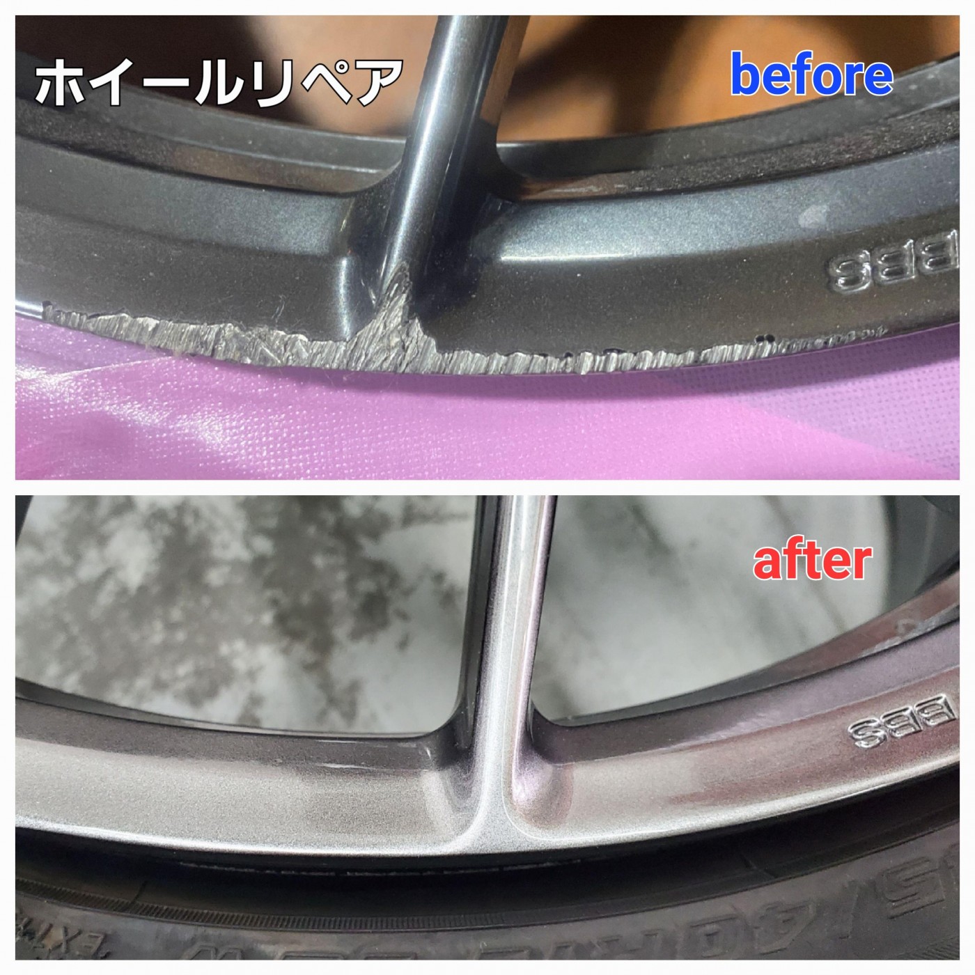 BBSのハイパーシルバーのホイールでリム部のがり傷でお困りのお客様よりリペアのご依頼をご依頼をいただきました。