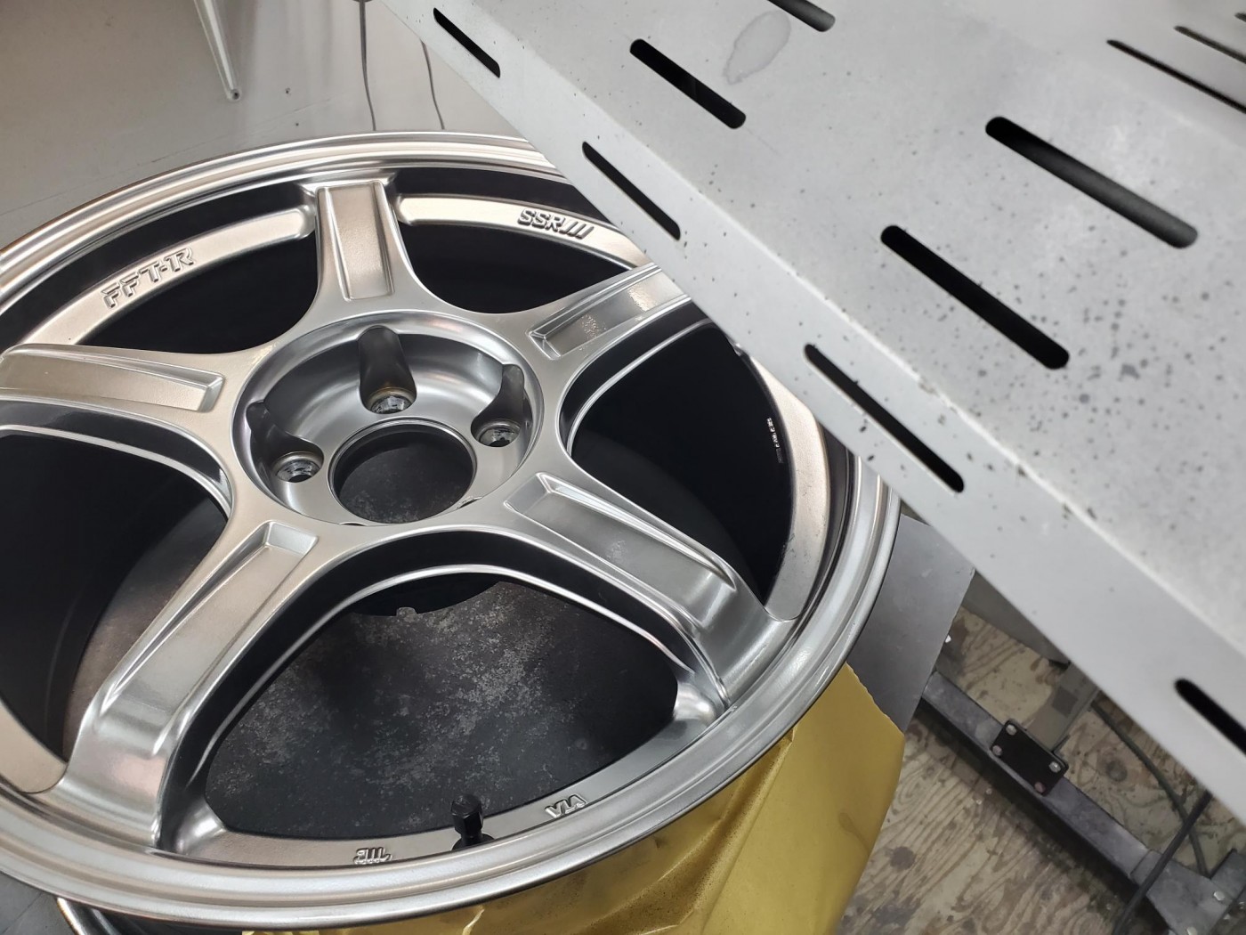 SSRのハイパーシルバーのホイールでリム部のがり傷でお困りのお客様よりリペアのご依頼をご依頼をいただきました。