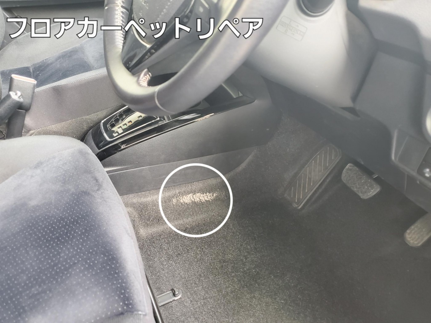 下取りした車両のフロアカーペットが、擦り切れていてお困りの自動車販売店様よりリペアのご依頼をいただきました。