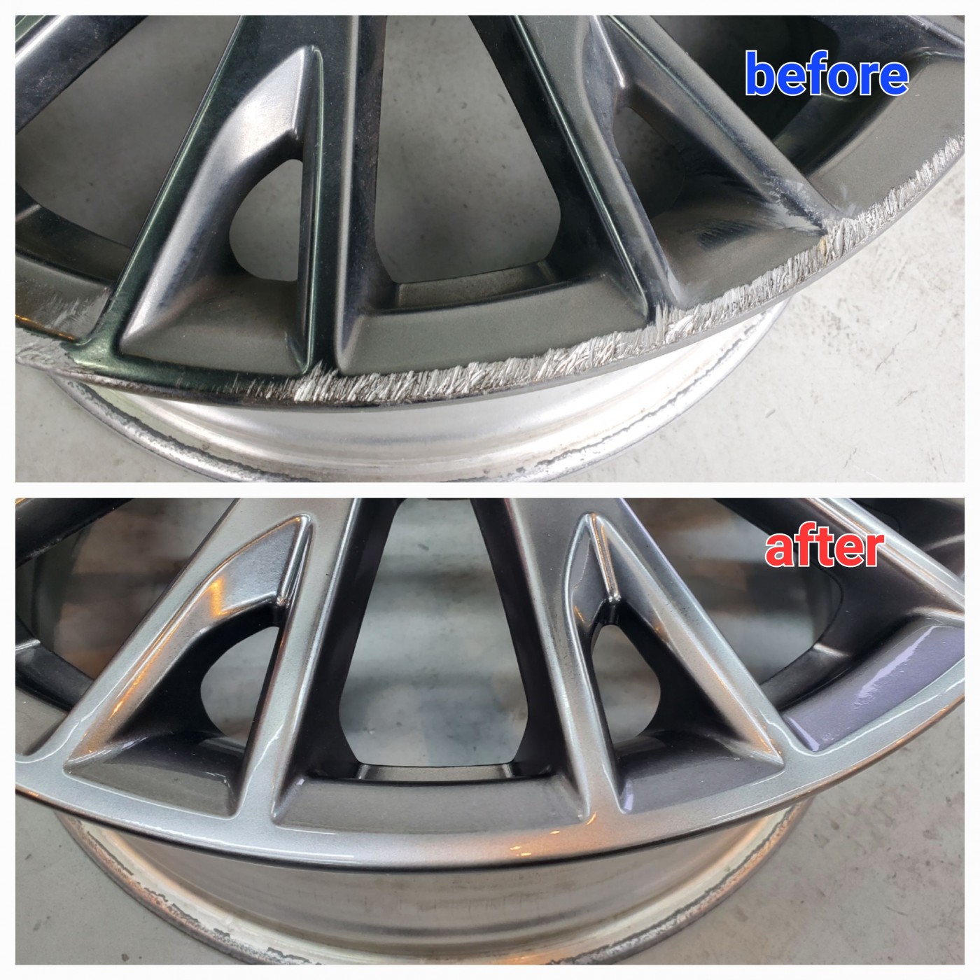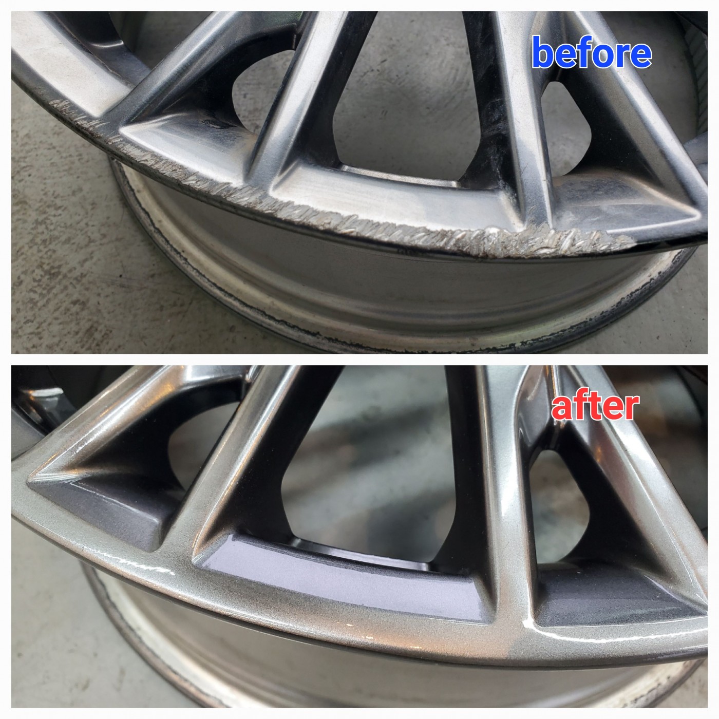 AUTECHのハイパーシルバーのホイールでリム部のがり傷でお困りのお客様よりリペアのご依頼をご依頼をいただきました。