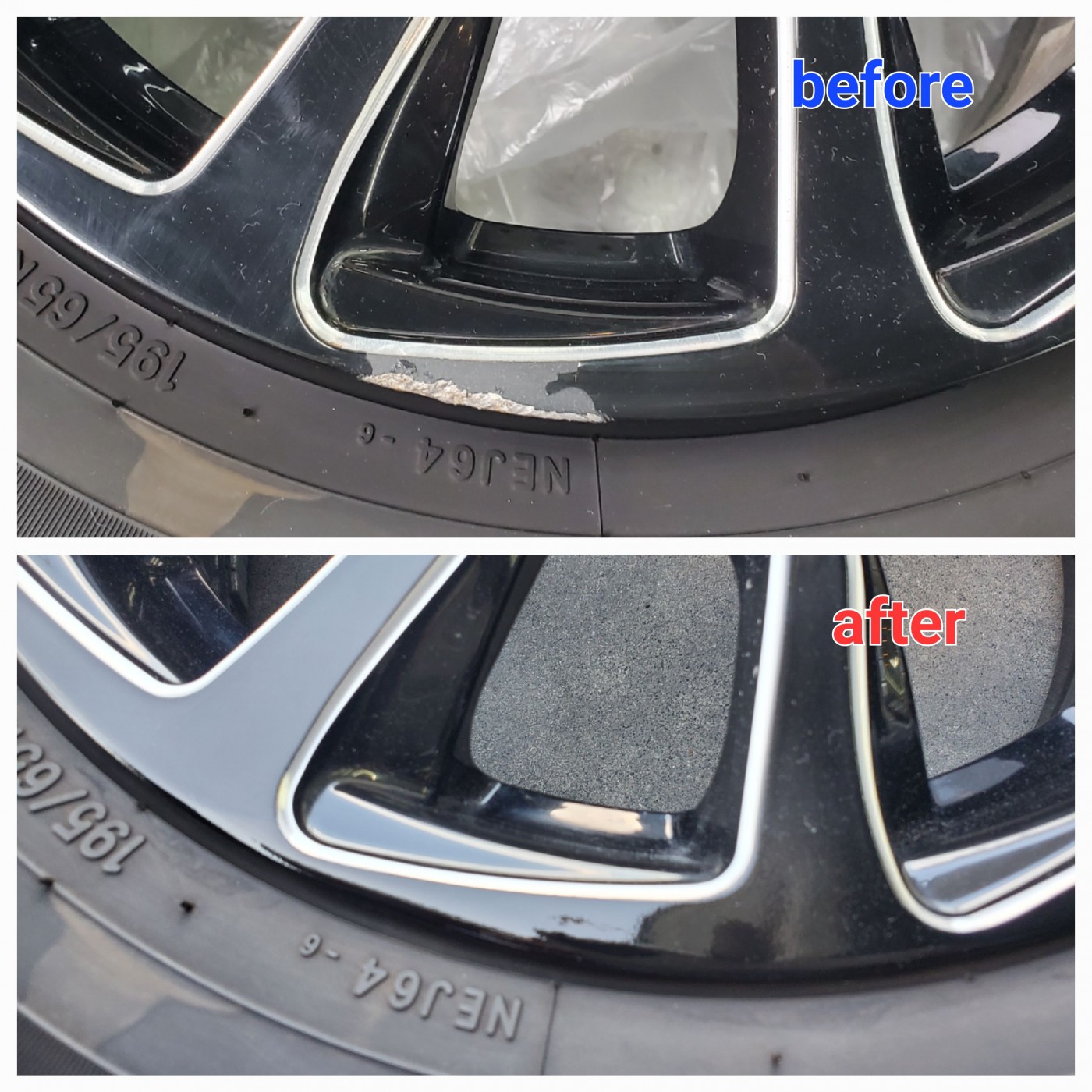 車を寄せすぎてホイールに傷を付けてしまったお客様からがり傷リペアのご依頼をいただきました。