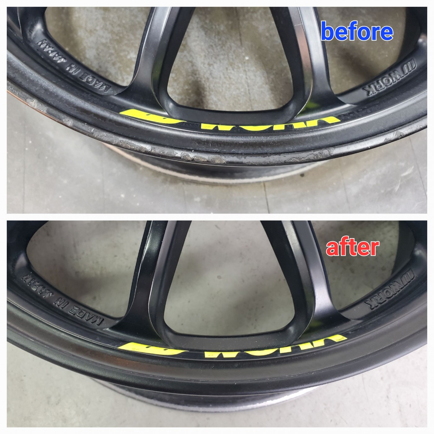RAYSのマットブラックのホイールのガリ傷でお困りのお客様よりリペアのご依頼をご依頼をいただきました。