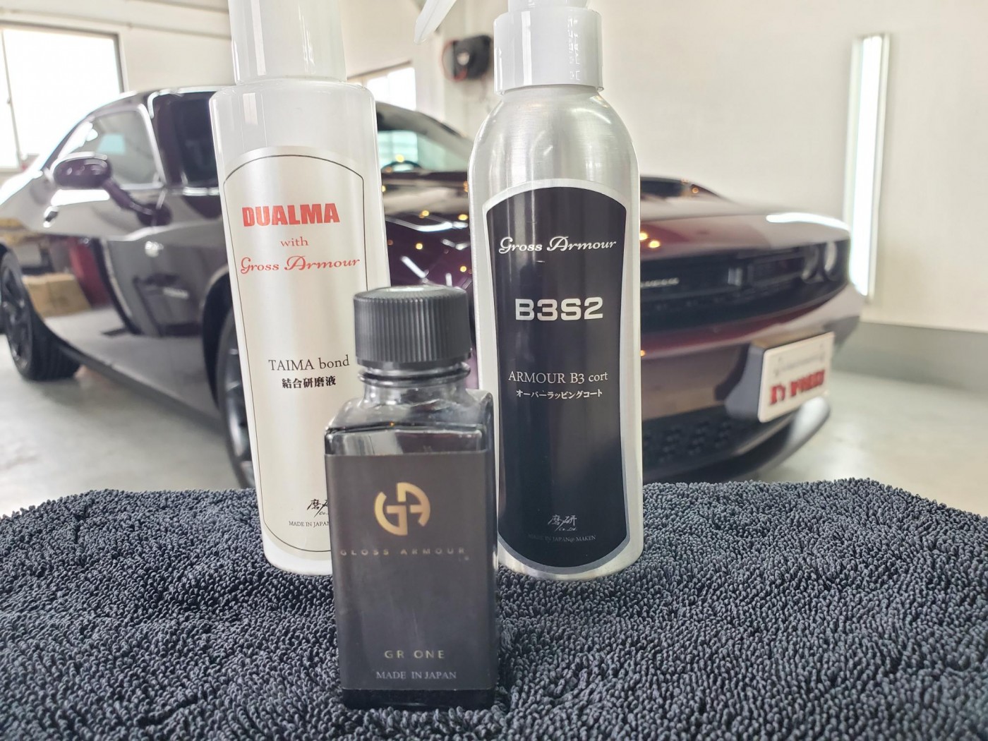 先ず初めに、ボディークレンジングからのボディー磨きにて雨染みや洗車傷をリセットして、TAIMA(コーティング結合研磨液)にて下地処理をしっかりと施工してから、ガラスコーティングのグロスアーマーを塗り込みして施工完了!