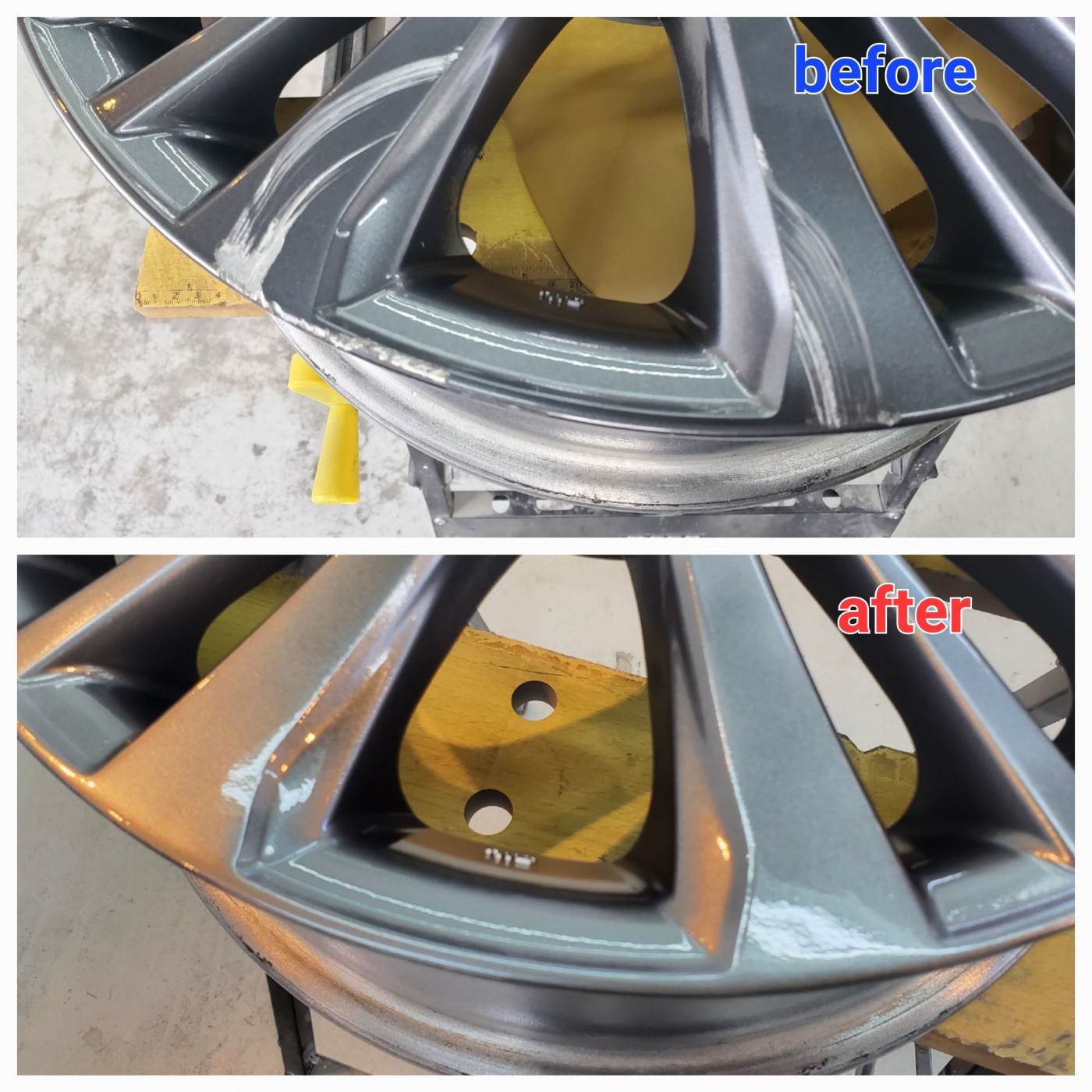 トヨタ純正のガンメタカラーのホイールのガリ傷でお困りのお客様よりリペアのご依頼をご依頼をいただきました。