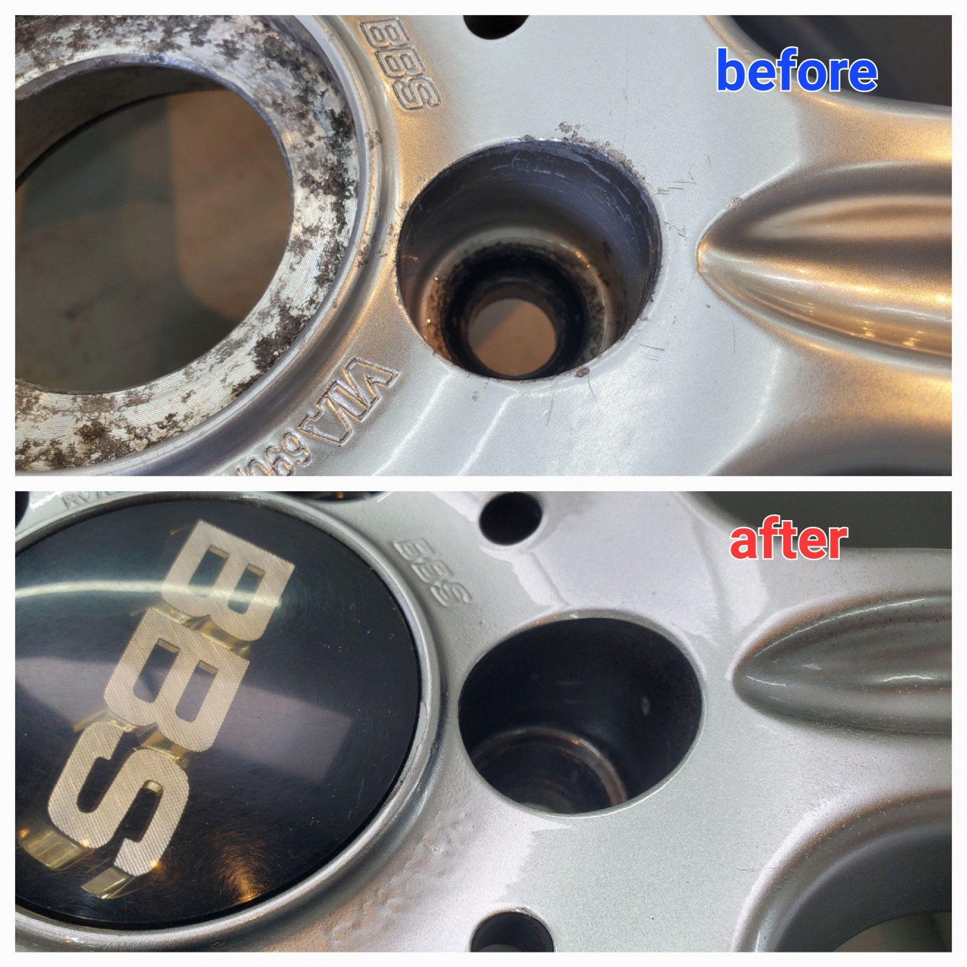 BBSのハイパーシルバーのホイールでスポーク、ナットホール周辺の腐食でお困りのお客様よりリペアのご依頼をご依頼をいただきました。