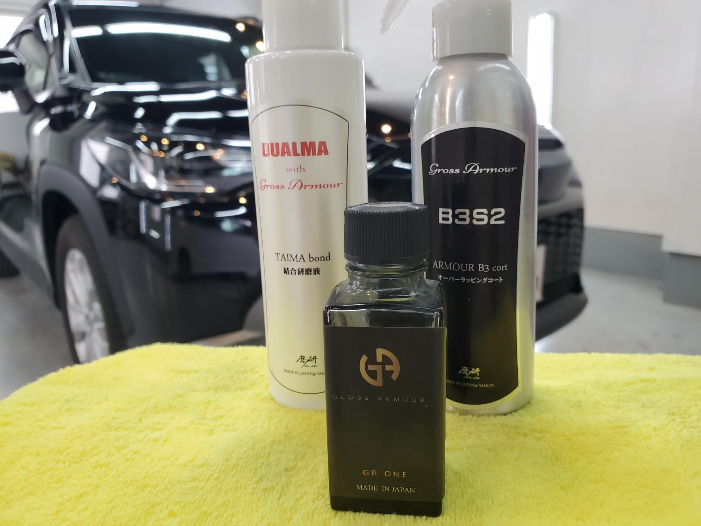 先ず初めに、ボディークレンジングからのボディー磨きにて雨染みや洗車傷をリセットして、TAIMA(コーティング結合研磨液)にて下地処理をしっかりと施工してから、ガラスコーティングのグロスアーマーを塗り込みして施工完了!