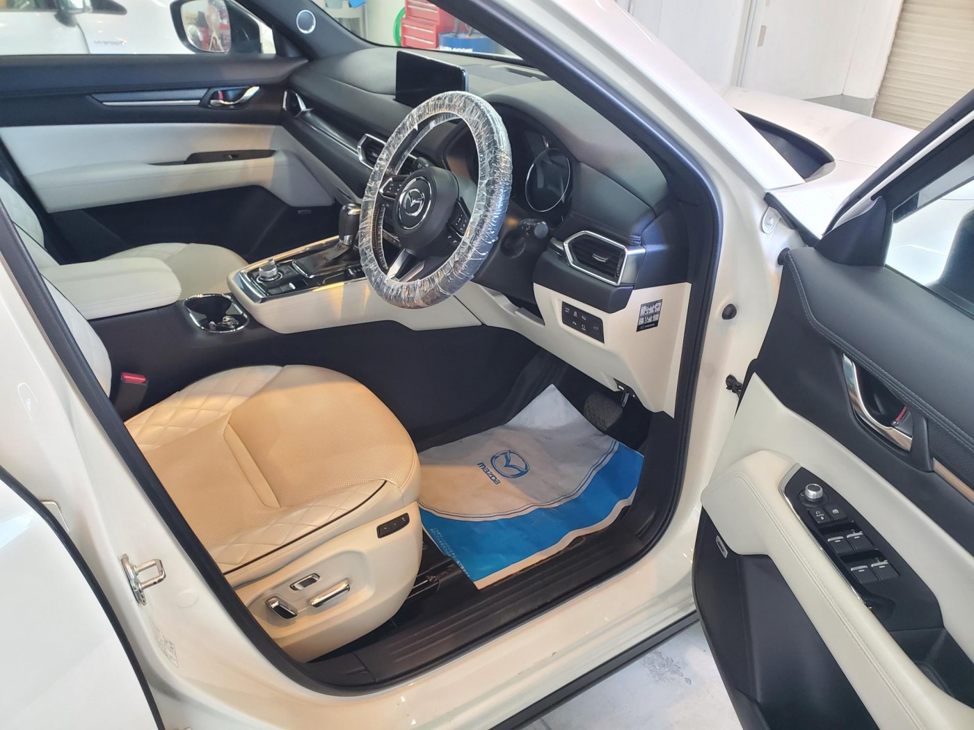 フロアマットを剥がし、車内全体をエアーブローし、砂や細かな塵を飛ばした後に掃除機にて吸引してからのダッシュボード、ドアパネル、インパネのクリーニングをして、次にシート全席のクリーニング、、、