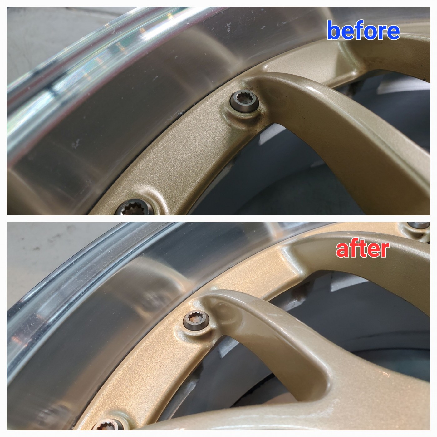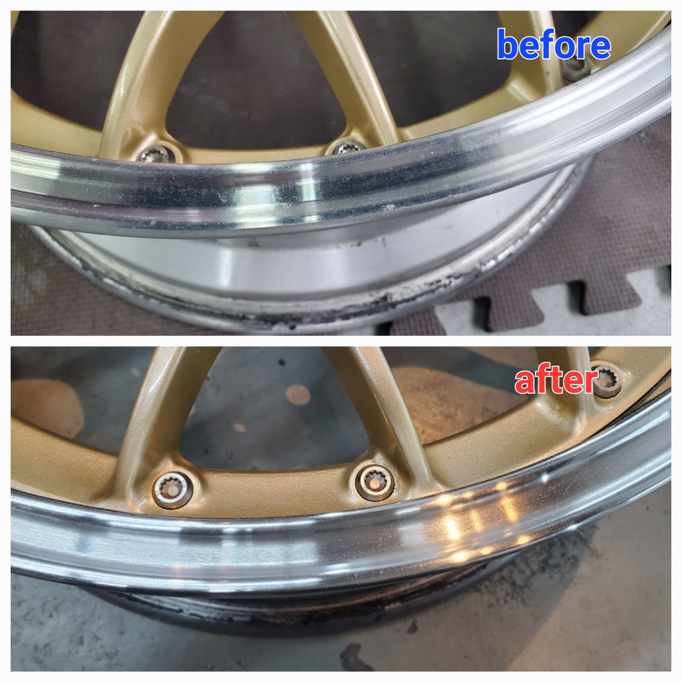 BBSのポリッシュ仕上げのホイールリムの腐食とすり傷でお困りのお客様からリペアのご依頼をいただきました。