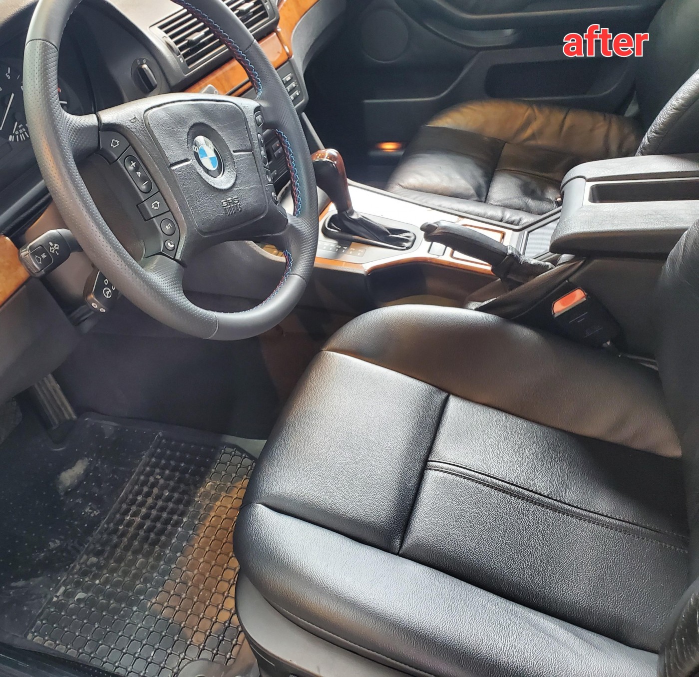 先ずは、レザーシートの座面の生地を剥がして、損傷のある部分の縫い糸を抜いて分離させて、新しい生地を型取りし、再度縫い合わせて座面にかぶせて施工完了!