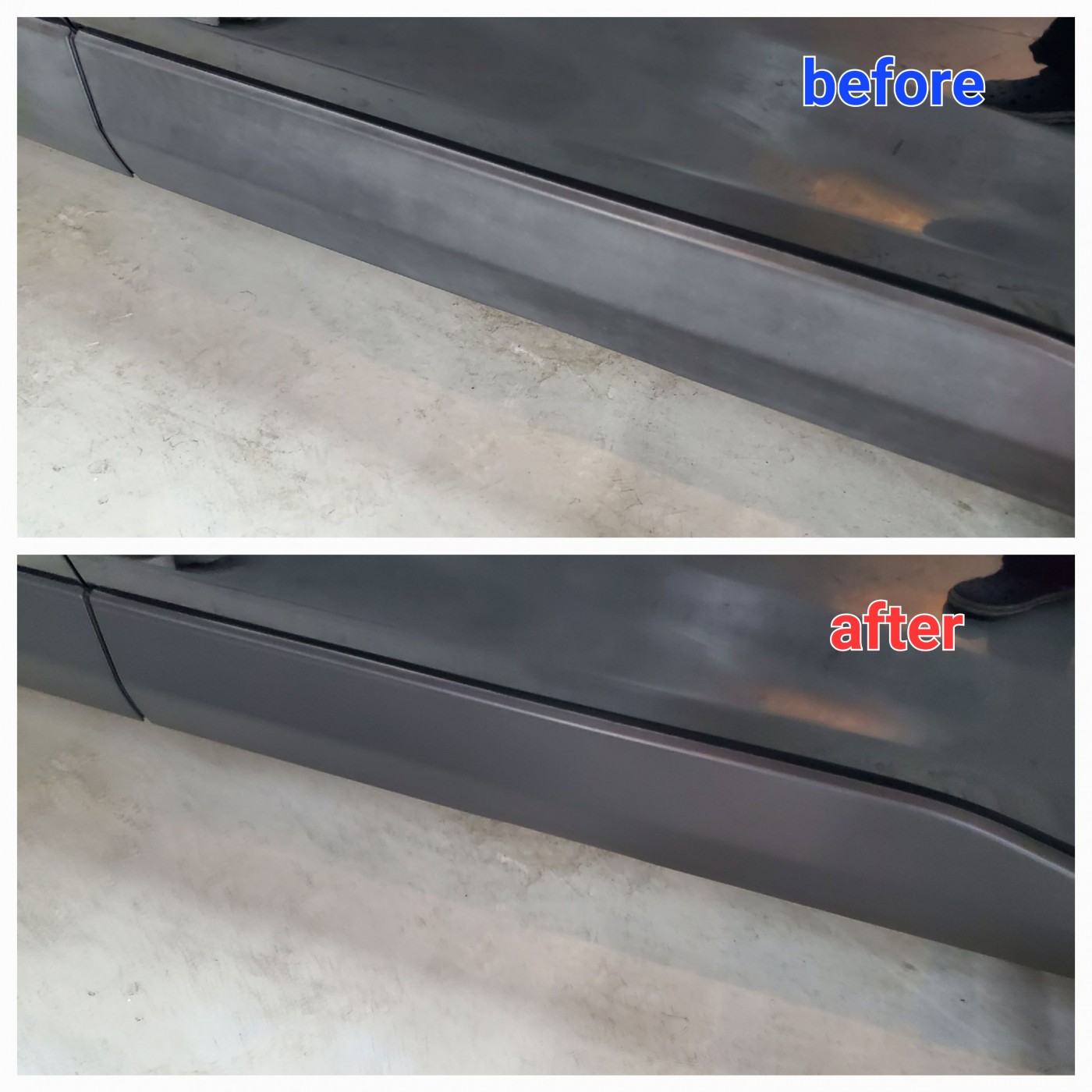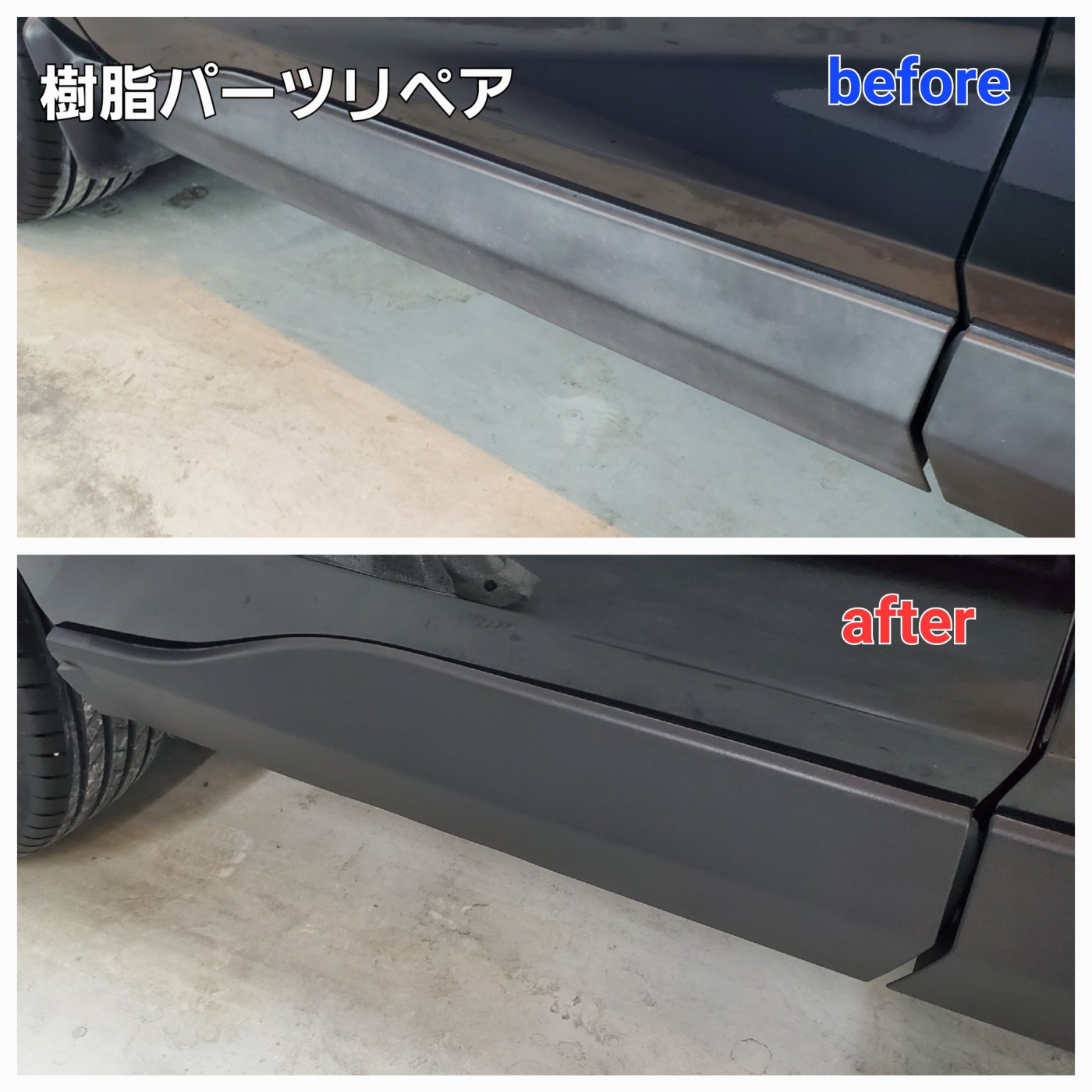 次に、樹脂パーツ部の付着物や汚れをしっかりとクリーニングした後に、専用のリペア剤を塗り込みして作業完了!!