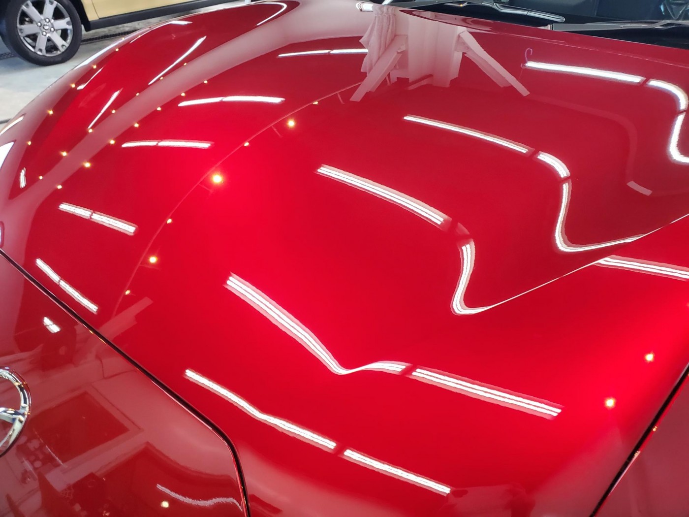 先ず初めに、ボディークレンジングからのボディー磨きにて雨染みや洗車傷をリセットして、TAIMA(コーティング結合研磨液)にて下地処理をしっかりと施工してから、ガラスコーティングのグロスアーマーを塗り込みして施工完了!