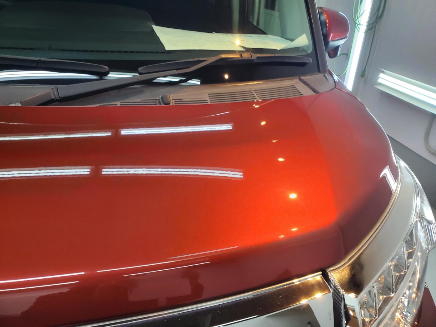 ご成約が決まった車両のボディーに付着した雨染みや洗車傷の除去と車内クリーニングをして欲しいと、自動車販売店様よりご依頼をいただきました。