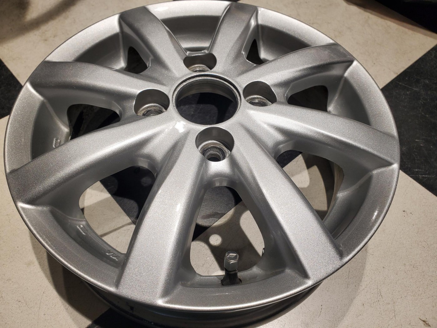 車両事故の際にシルバーカラーのホイールにもガリ傷が付いていてお困りのお客様よりリペアのご依頼をご依頼をいただきました。