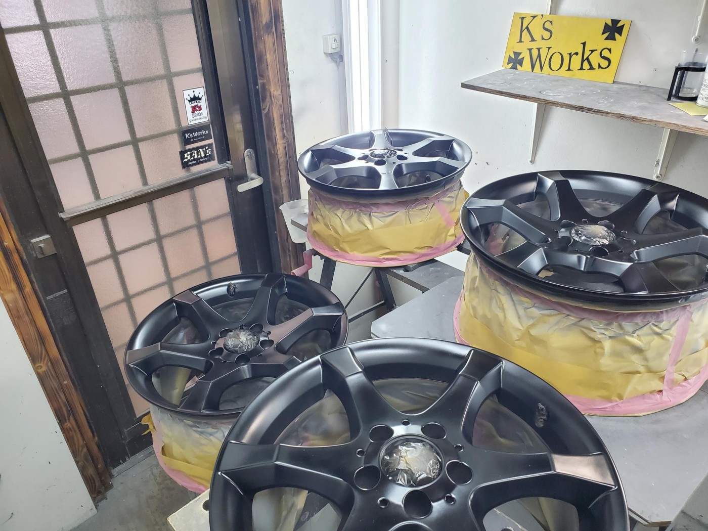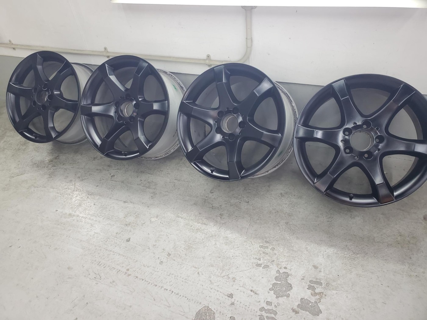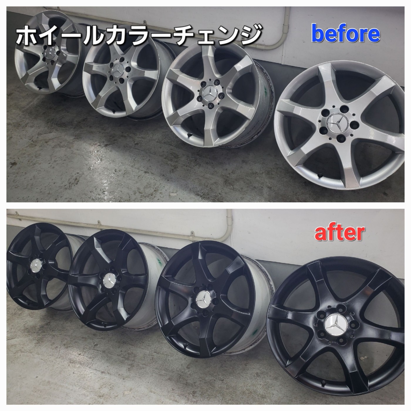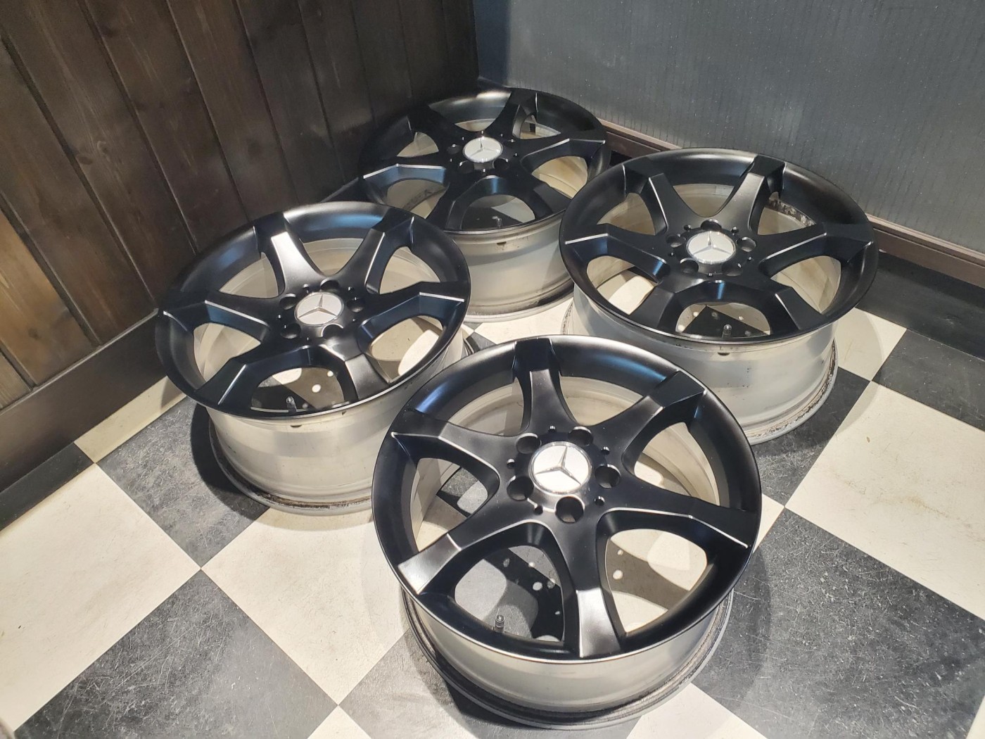 ベンツ純正のホイールをシルバーからマットブラック(七分艶)にカラーチェンジのご依頼をいただきました。