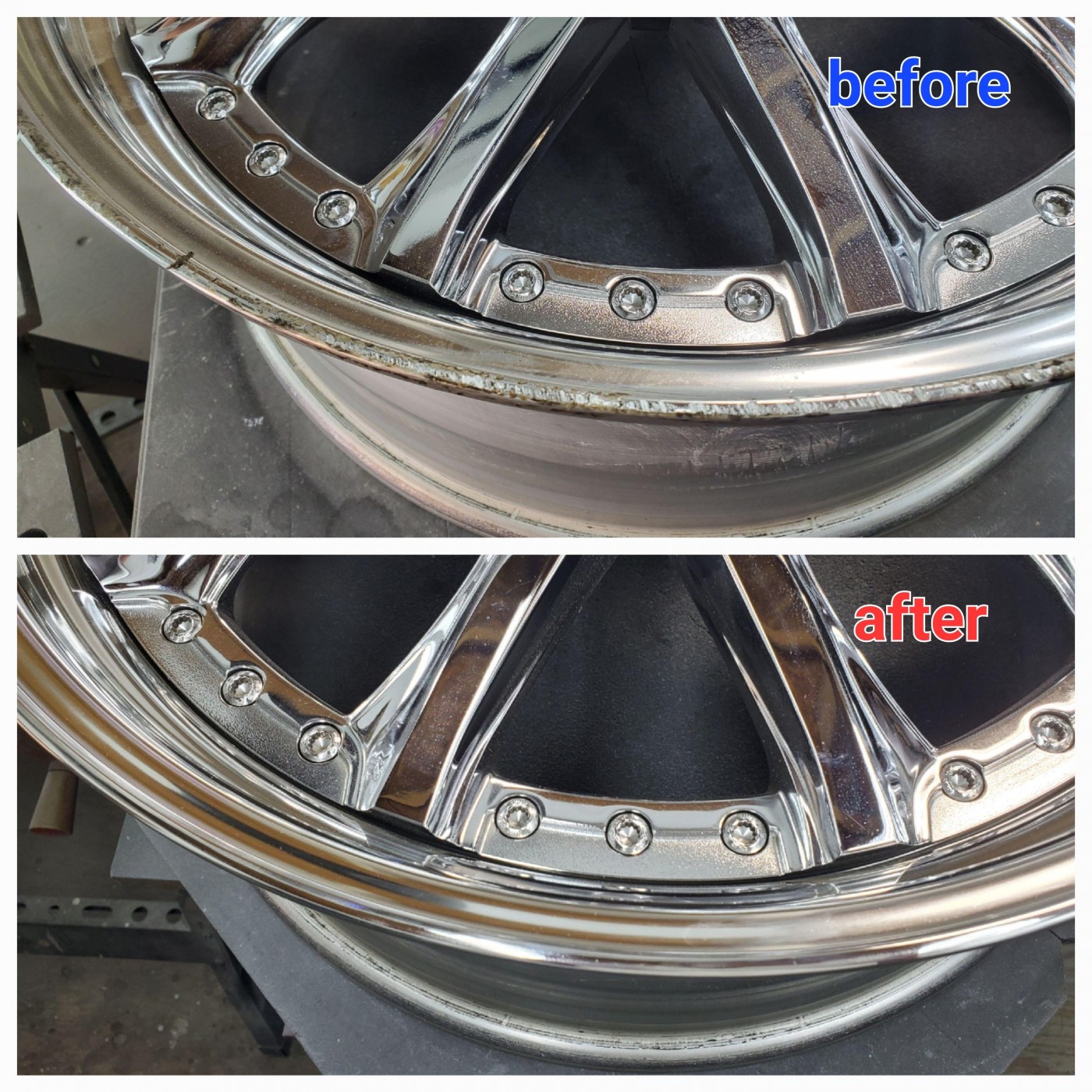 BBSのポリッシュ仕上げのホイールリムの腐食とすり傷でお困りのお客様からリペ...
