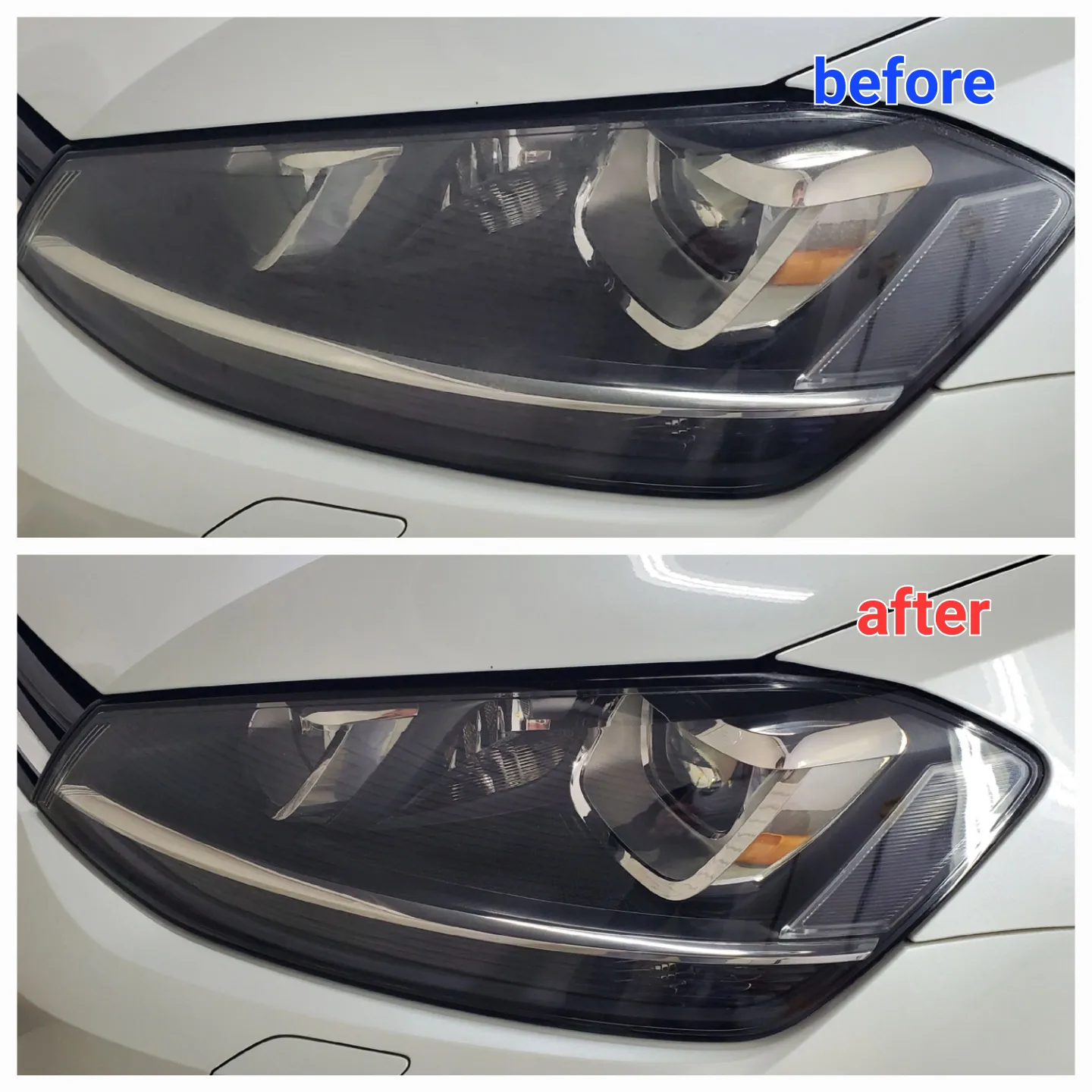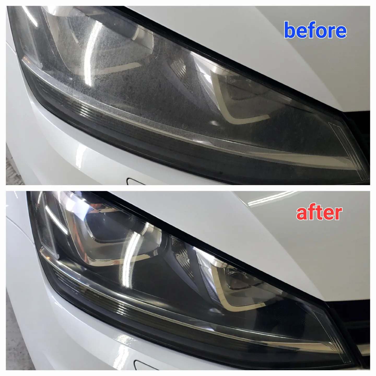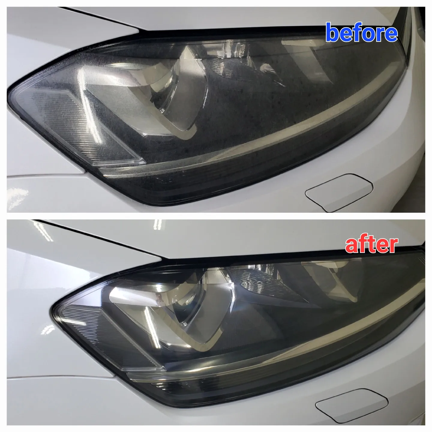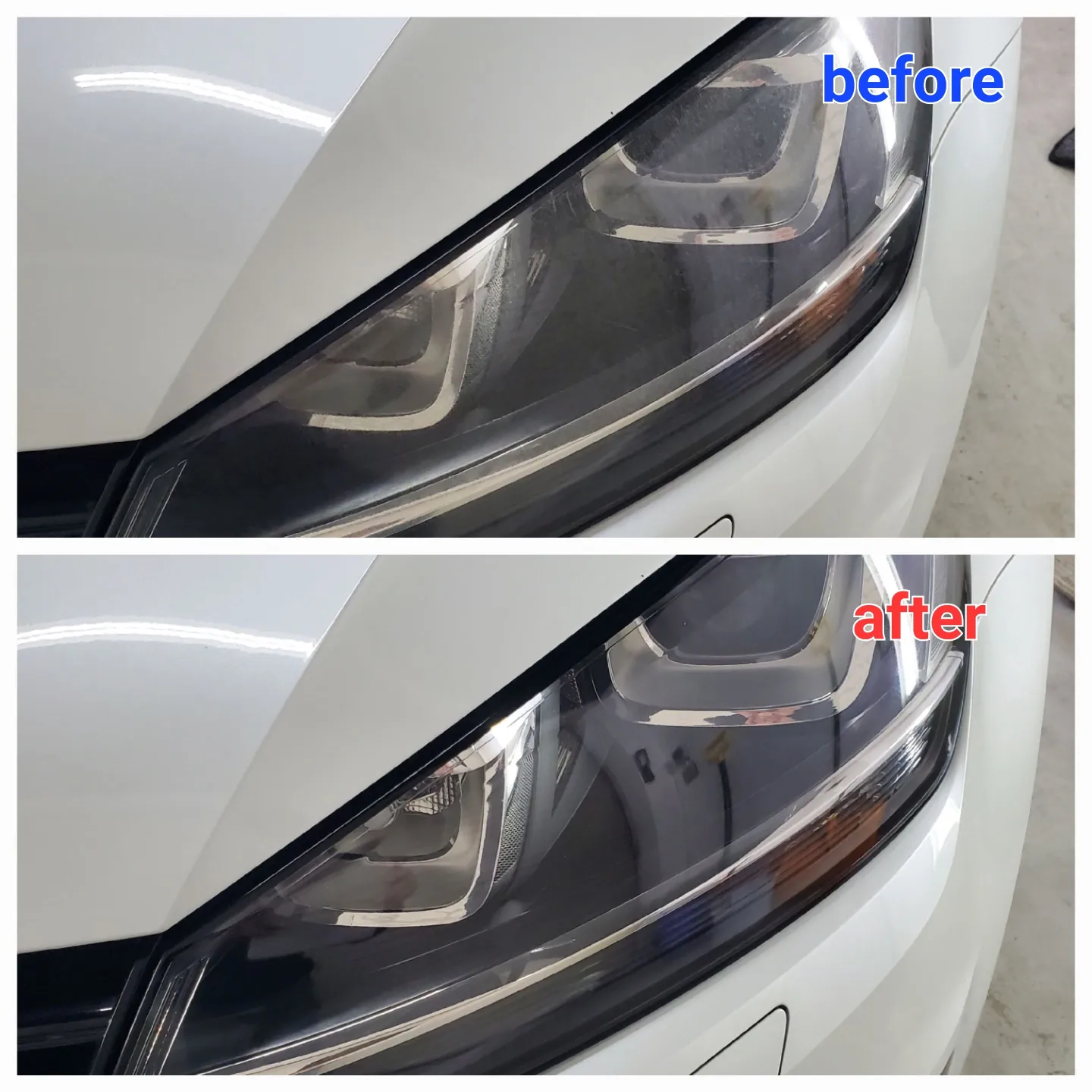 先ずは、表面のハードコートをサンディングして黄ばみ、くすみ、細かな擦り傷をしっかり取り除き、そこから磨き仕上げをして最後に皮膜材を塗り込んで施工完了!
