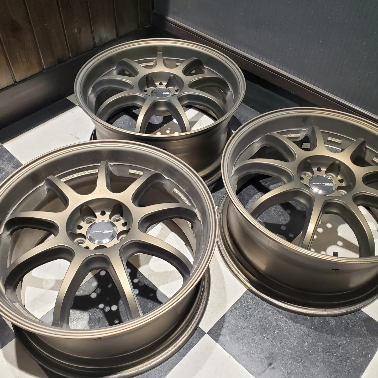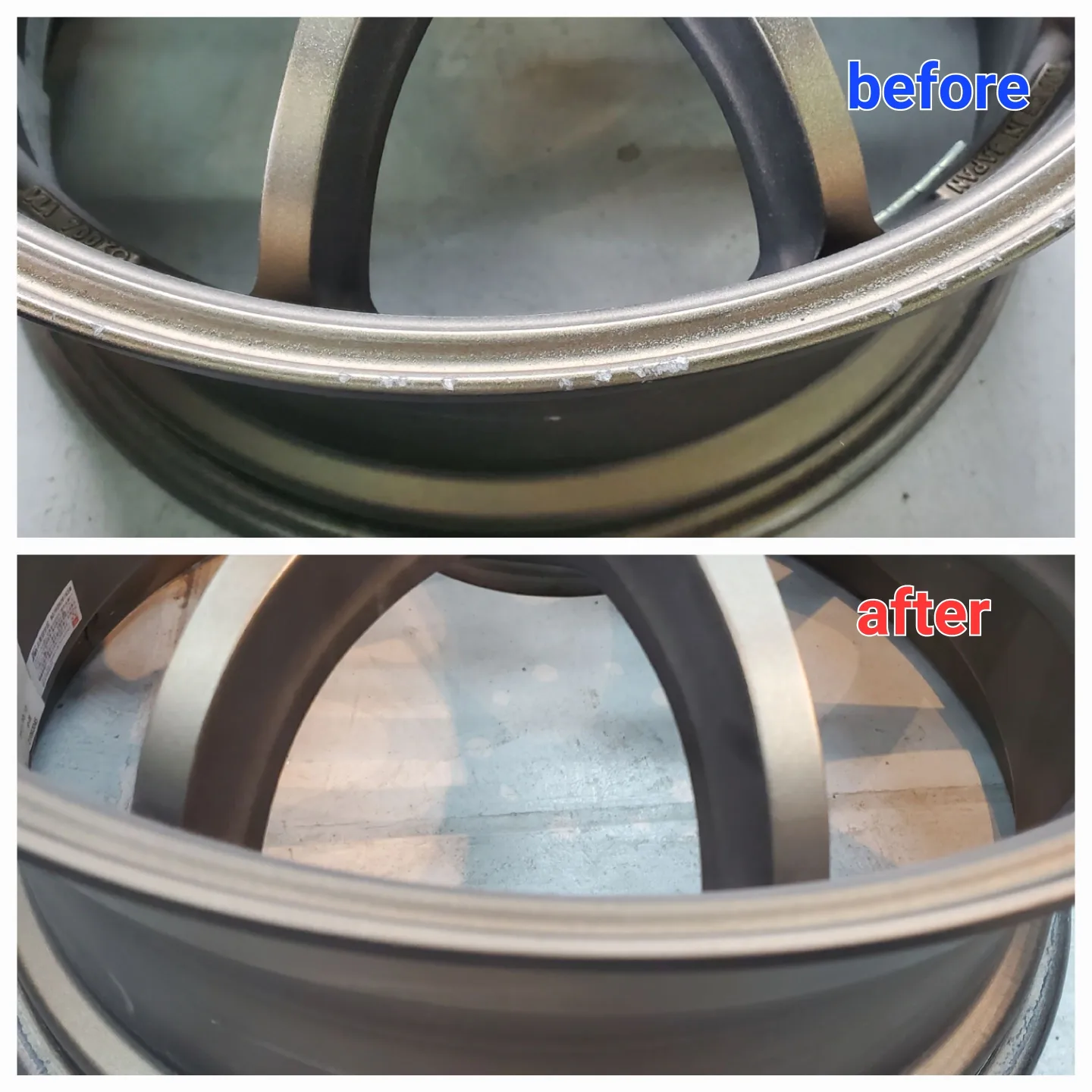 WORKのマットゴールド色のホイールでリムのがり傷でお困りのお客様よりリペアのご依頼をご依頼をいただきました。