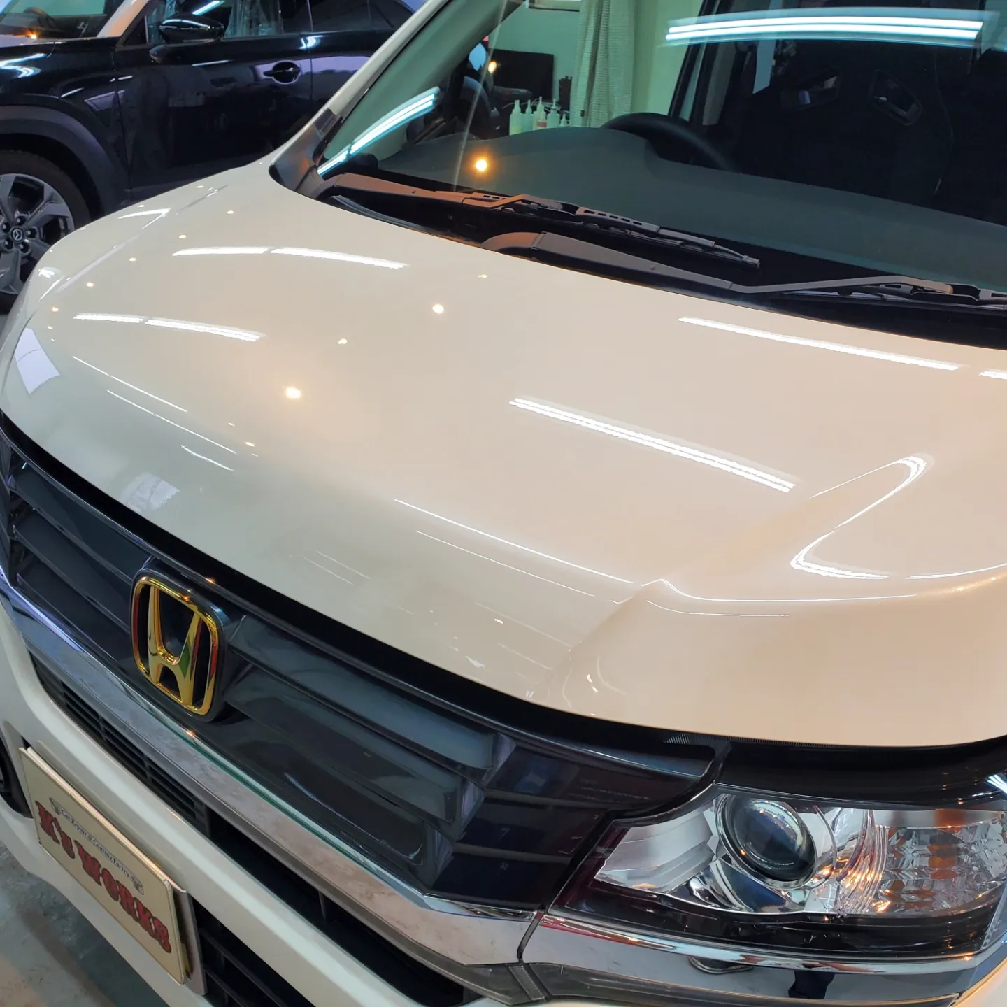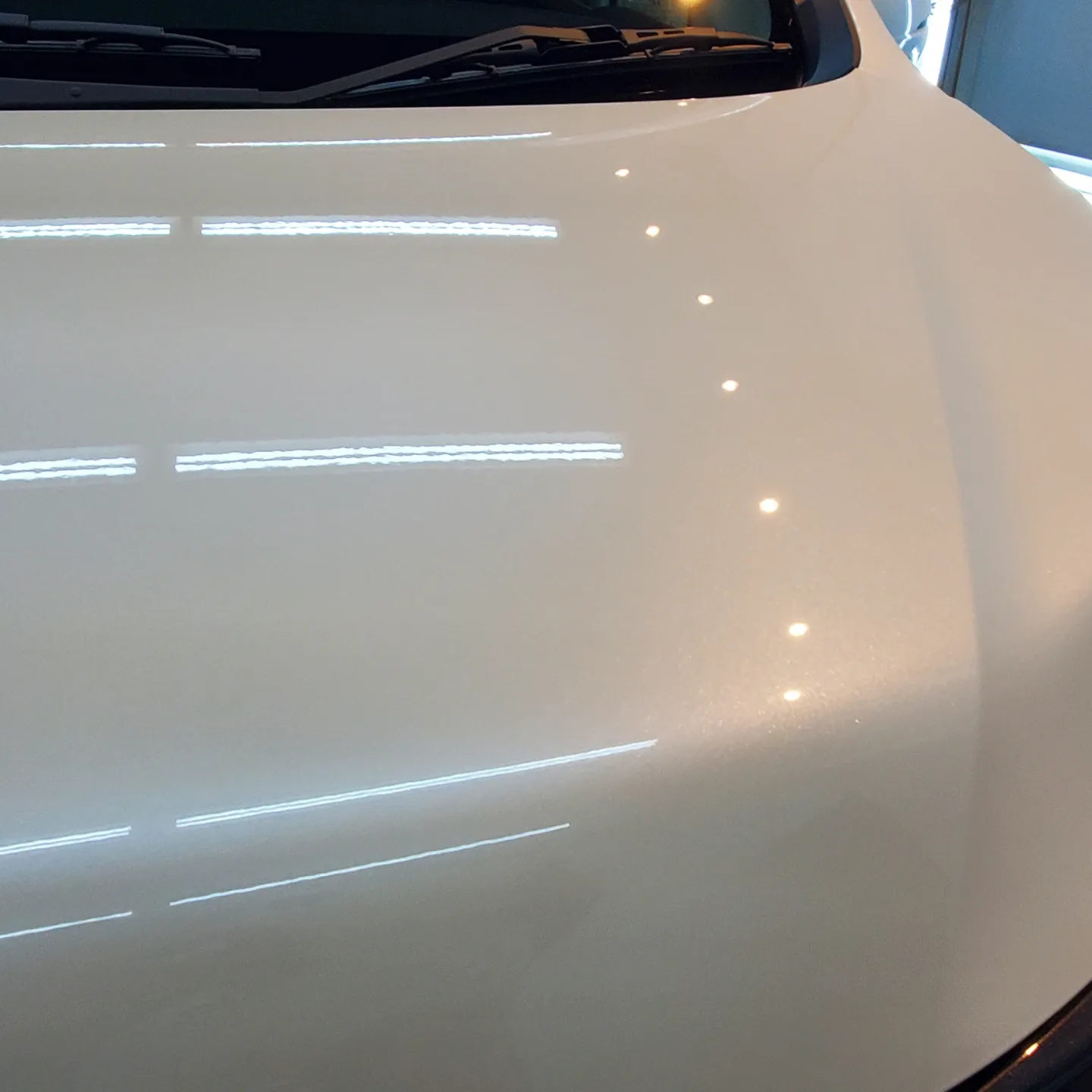 ボディークレンジングからの軽研磨をして新車にも付いている僅かな傷もリセットしてからTAIMA(コーティング結合研磨液)にて下地処理を‎‎しっかりとしてボディーについた傷や洗車傷などをリセットし、ガラスコーティングのグロスアーマーを塗り込みして施工完了! ‎