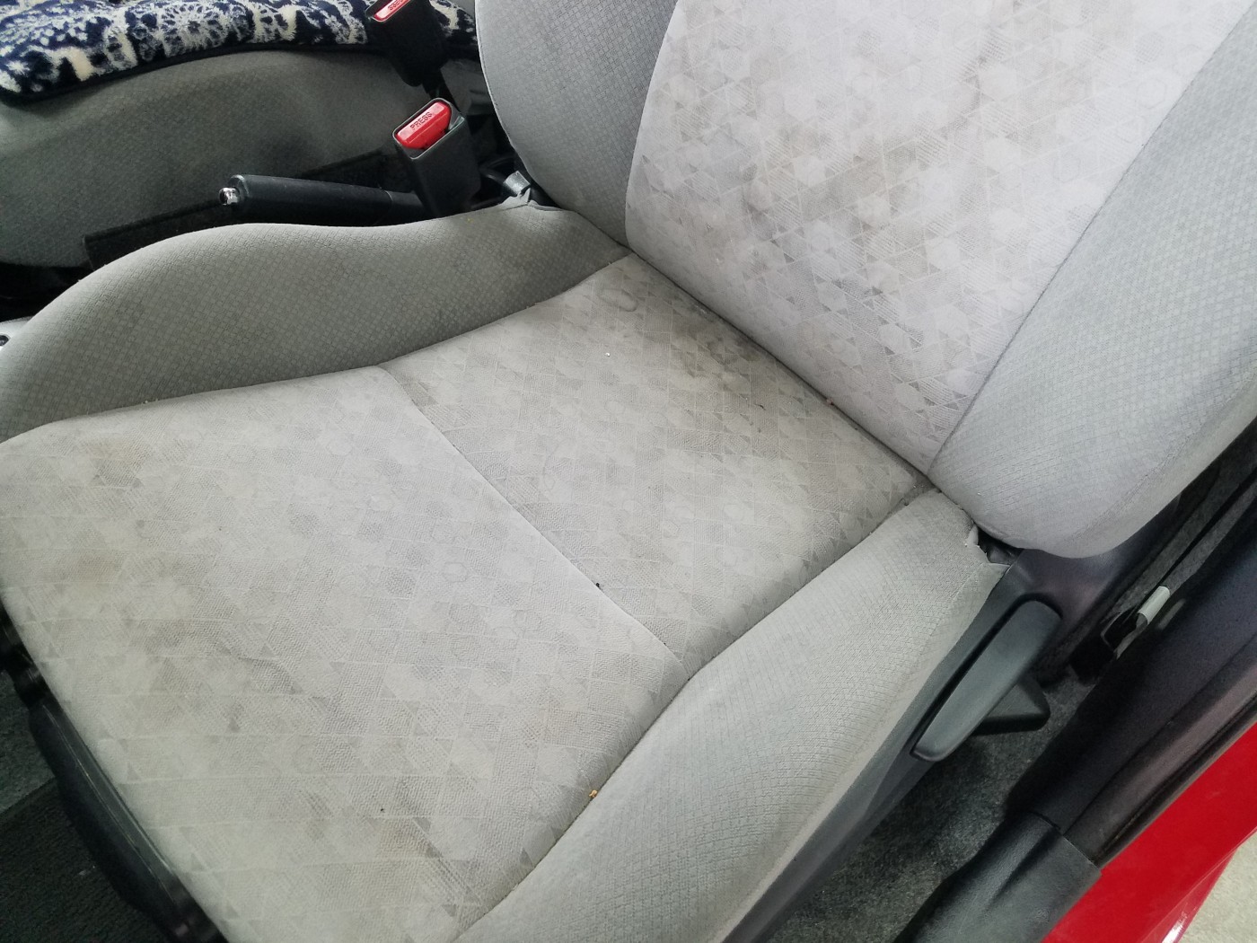 シートの食べこぼし、飲みこぼしによる汚れシミもスチームリンサーで綺麗に洗浄クリーニング!
