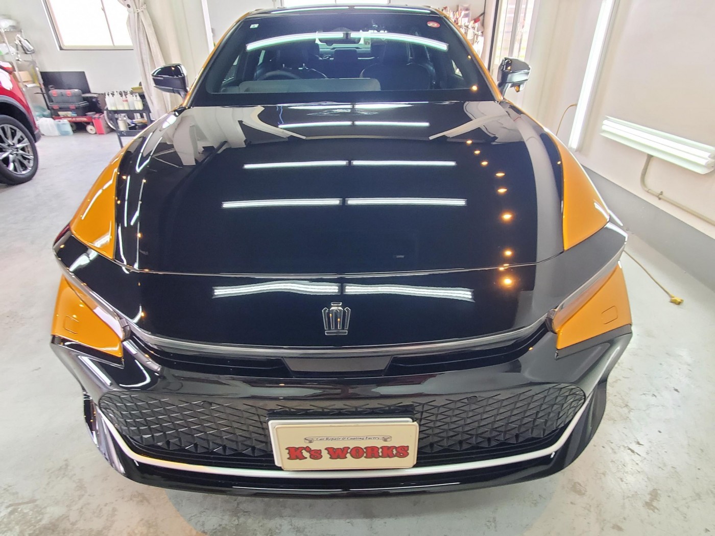ボディークレンジングからの軽研磨をして新車にも付いている僅かな傷もリセットしてからTAIMA(コーティング結合研磨液)にて下地処理を‎‎しっかりとしてボディーについた傷や洗車傷などをリセットし、ガラスコーティングのグロスアーマーを塗り込みして施工完了! ‎