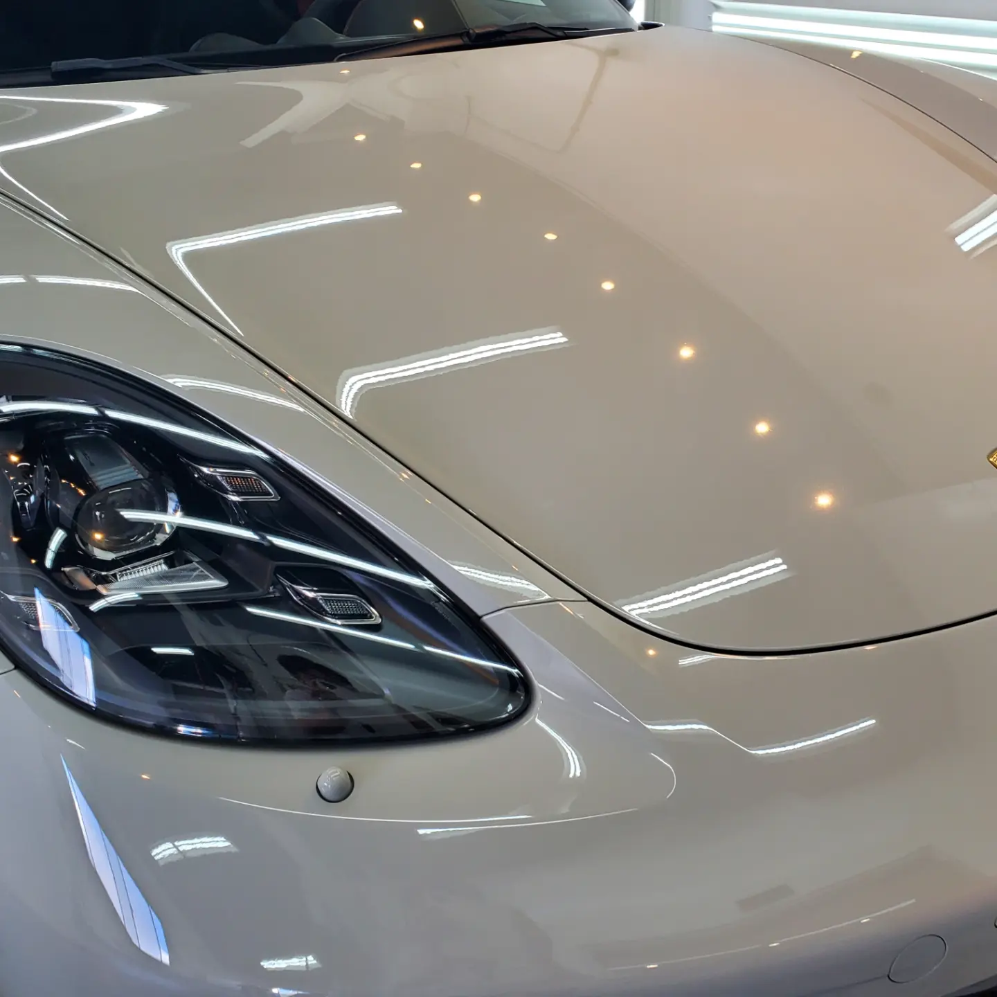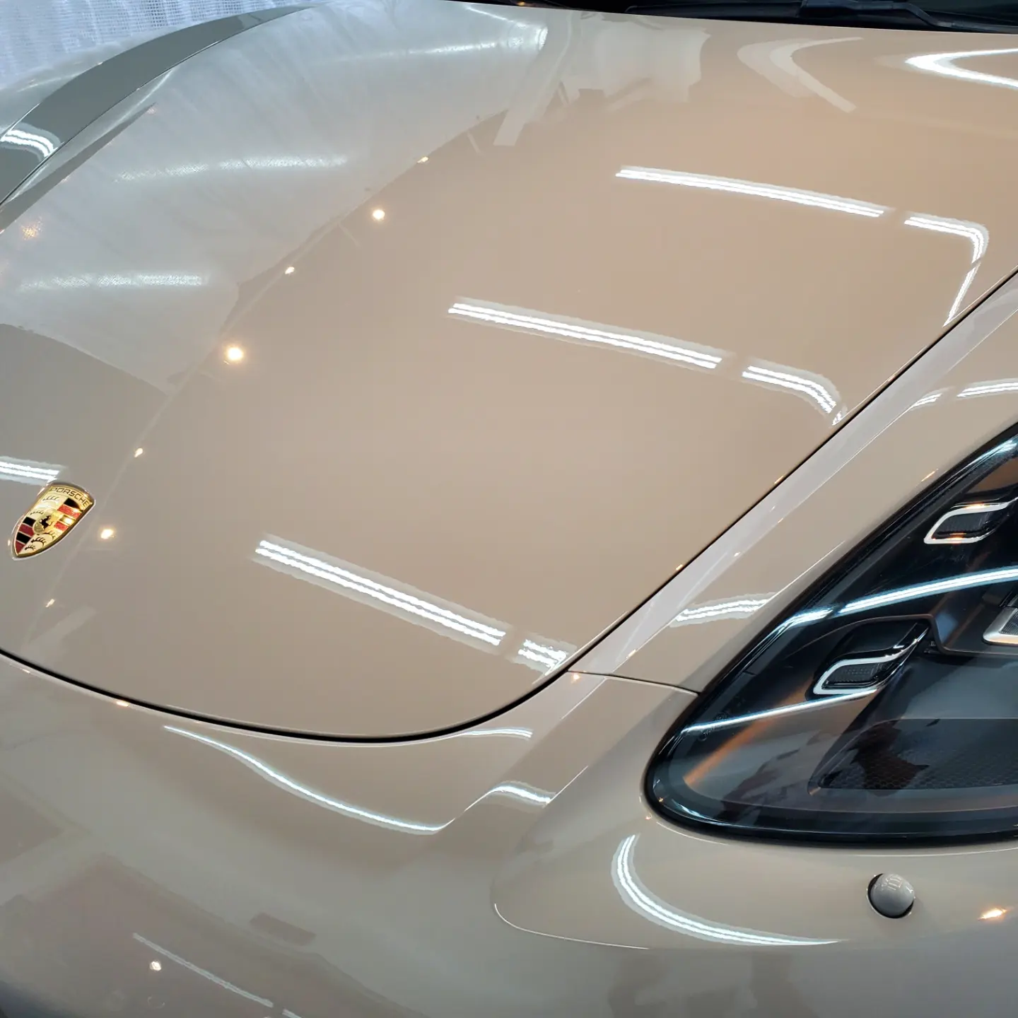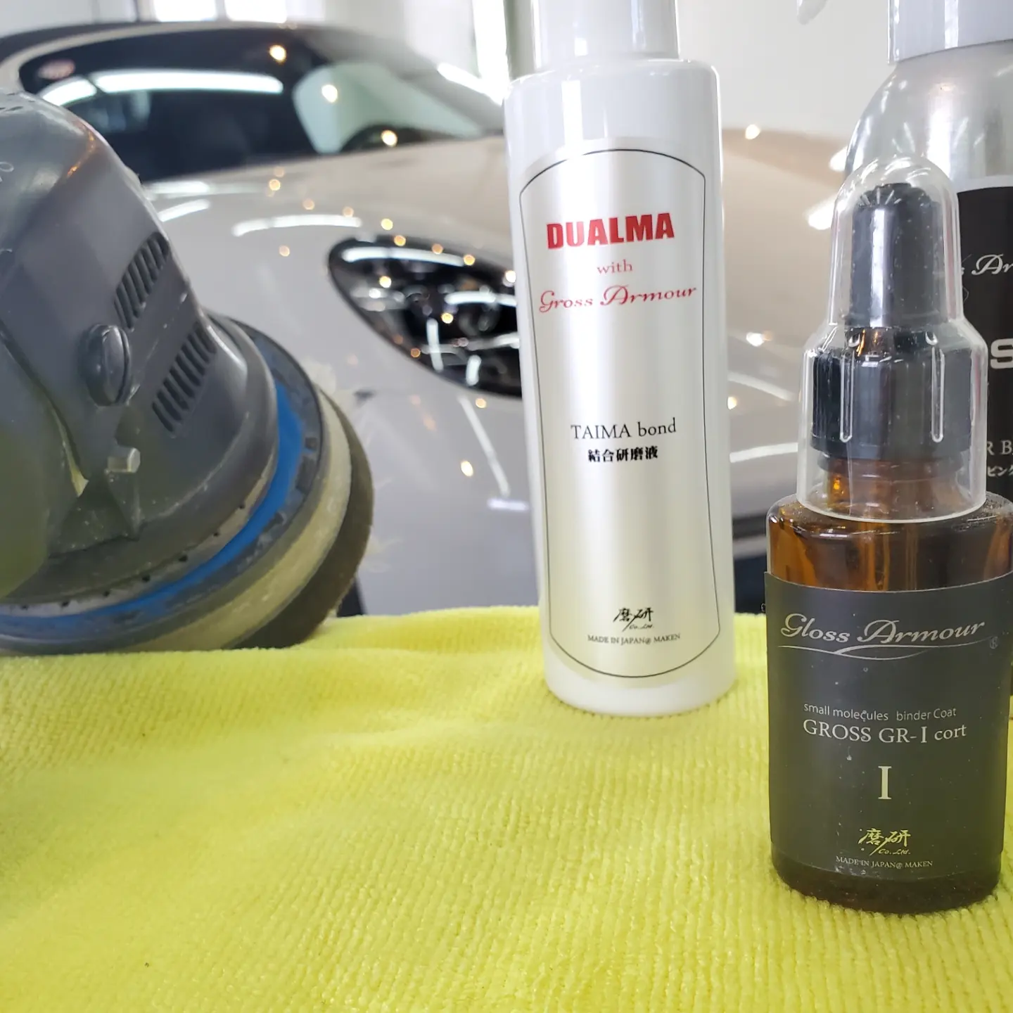 ボディークレンジングからの軽研磨をして新車にも付いている僅かな傷もリセットしてからTAIMA(コーティング結合研磨液)にて下地処理をしっかりとしてボディーについた傷や洗車傷などをリセットし、ガラスコーティングのグロスアーマーを塗り込みして施工完了!