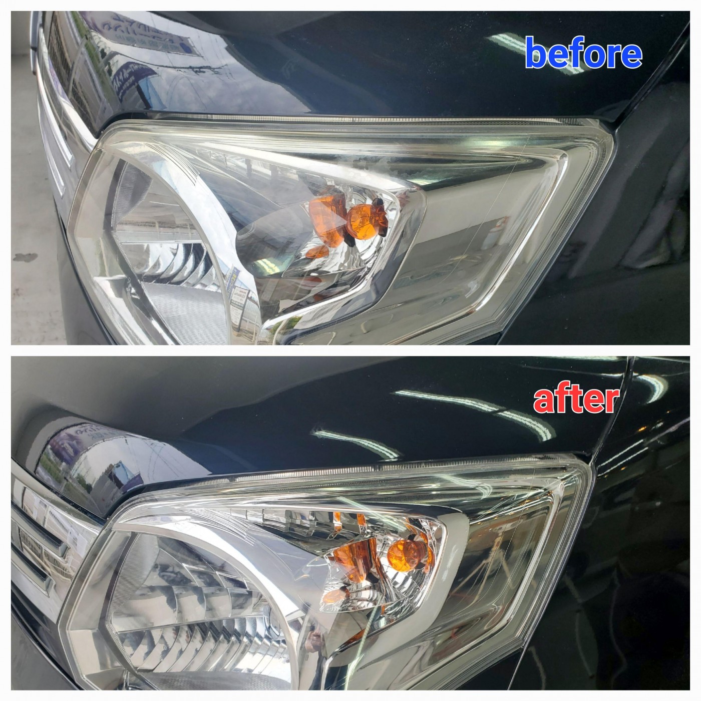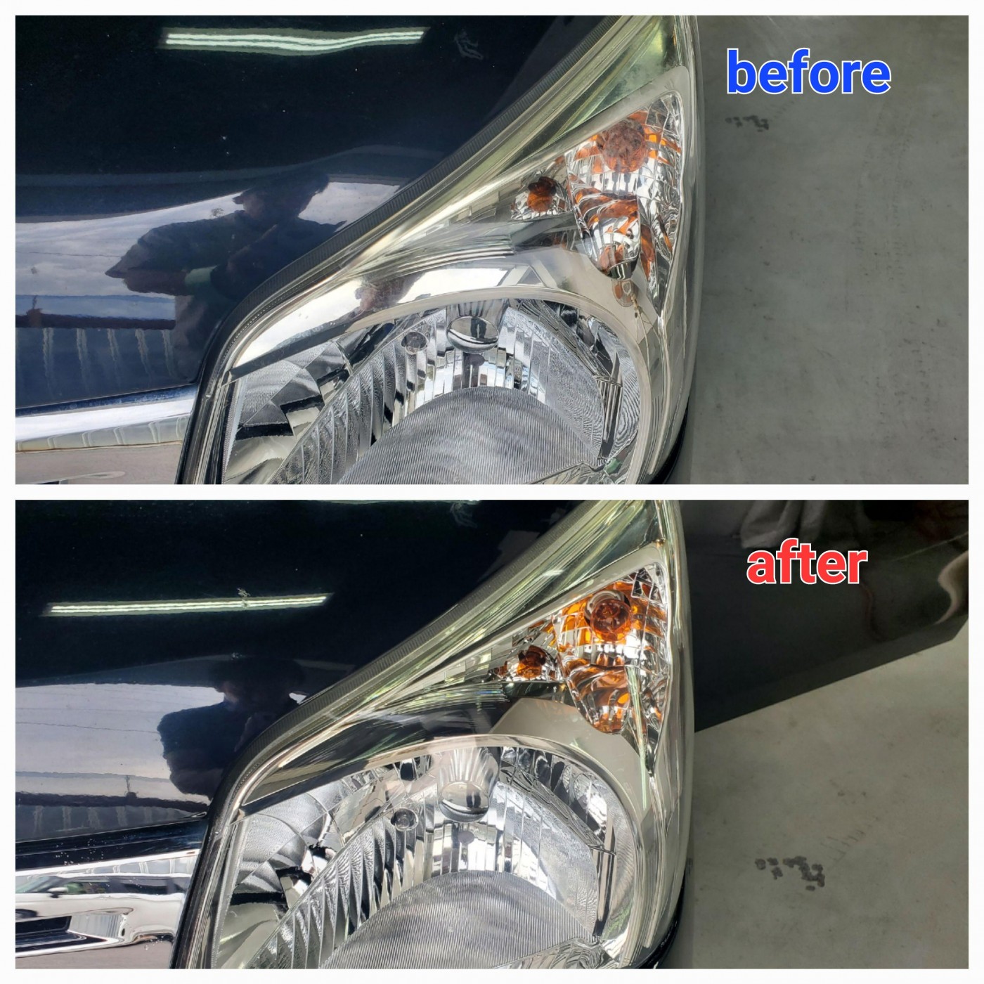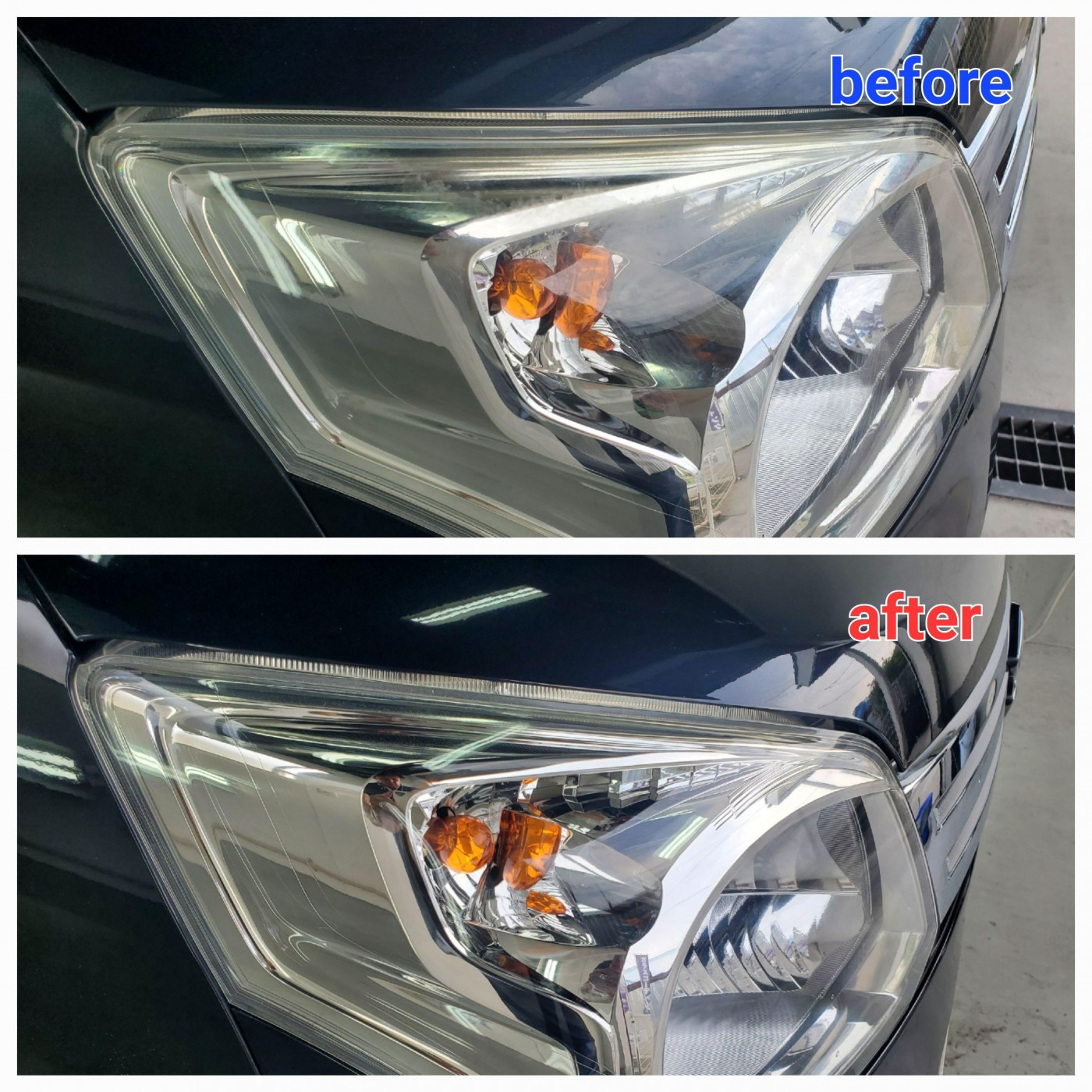 透明感が復活したヘッドライトを見たオーナー様から、仕上がりをとても喜んでいただきました。