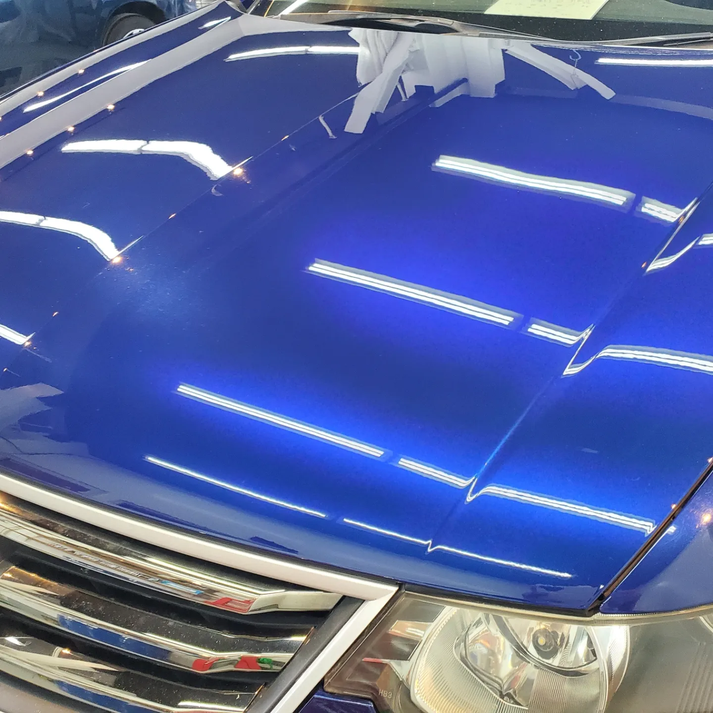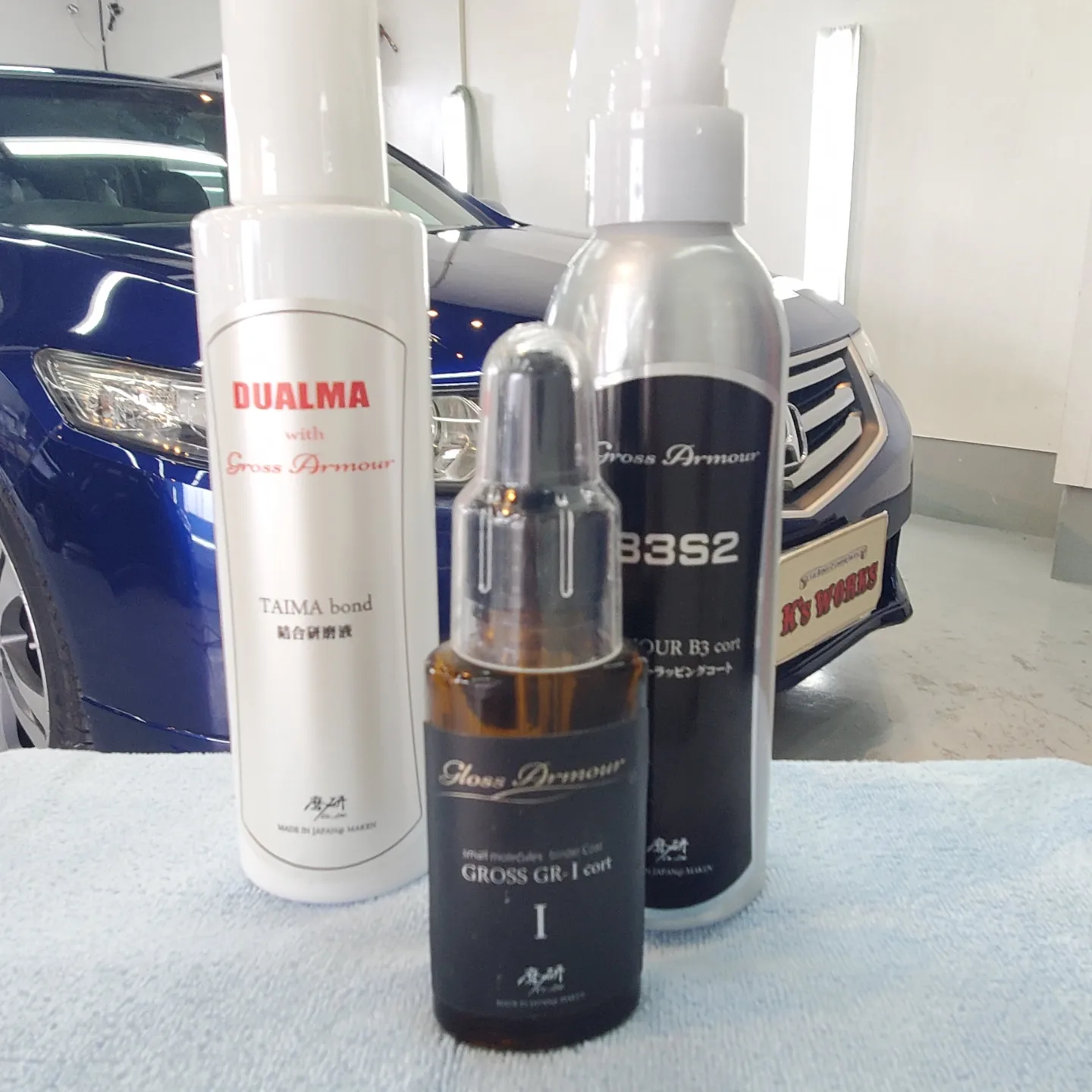ボディークレンジングからの軽研磨をして新車にも付いている僅かな傷もリセットしてからTAIMA(コーティング結合研磨液)にて下地処理をしっかりとしてボディーについた傷や洗車傷などをリセットし、ガラスコーティングのグロスアーマーを塗り込みして施工完了!