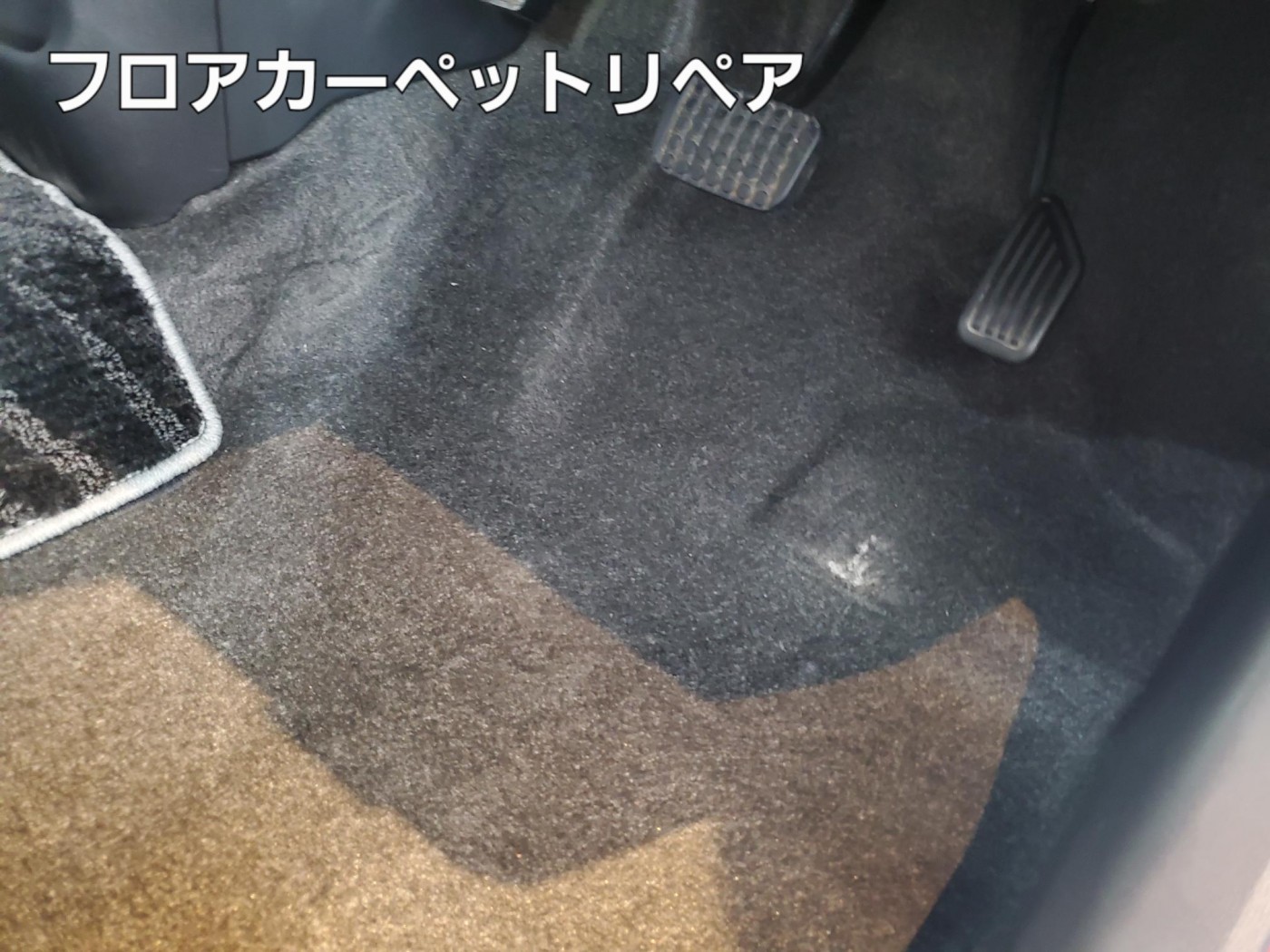 仕入れた車両のフロアカーペットが、擦り切れていてお困りの自動車販売店様よりリペアのご依頼をいただきました。