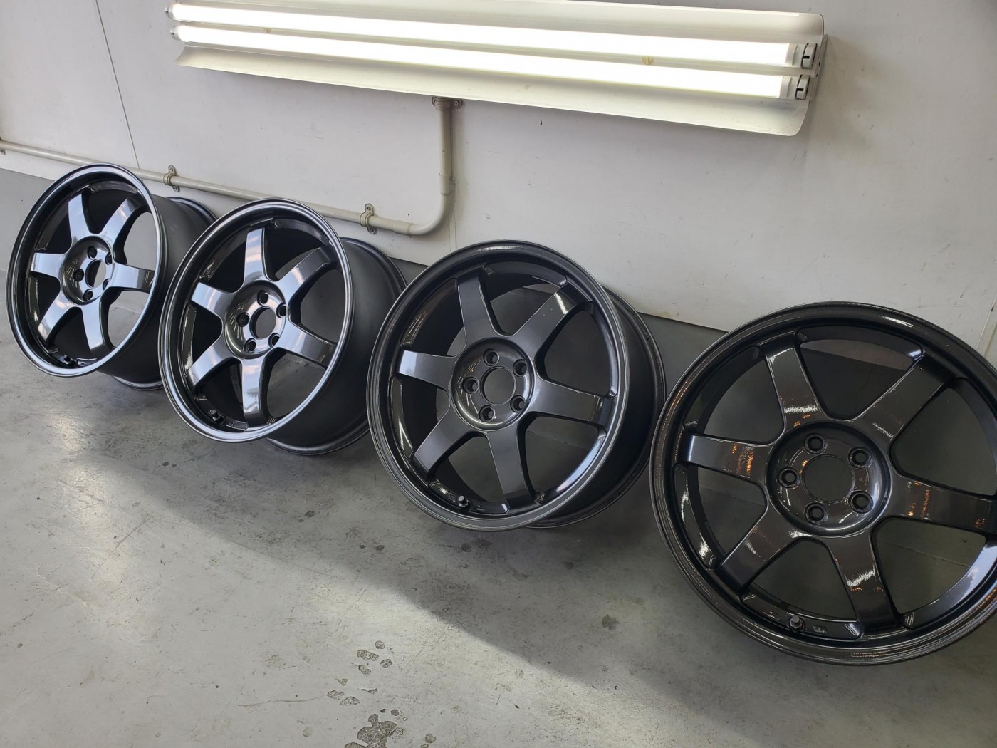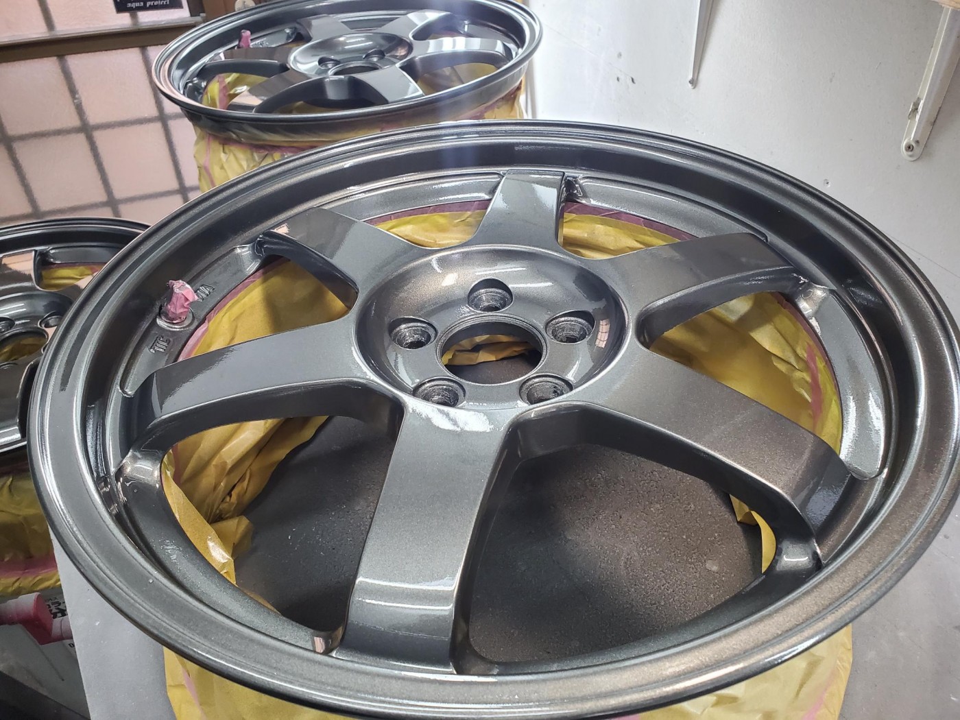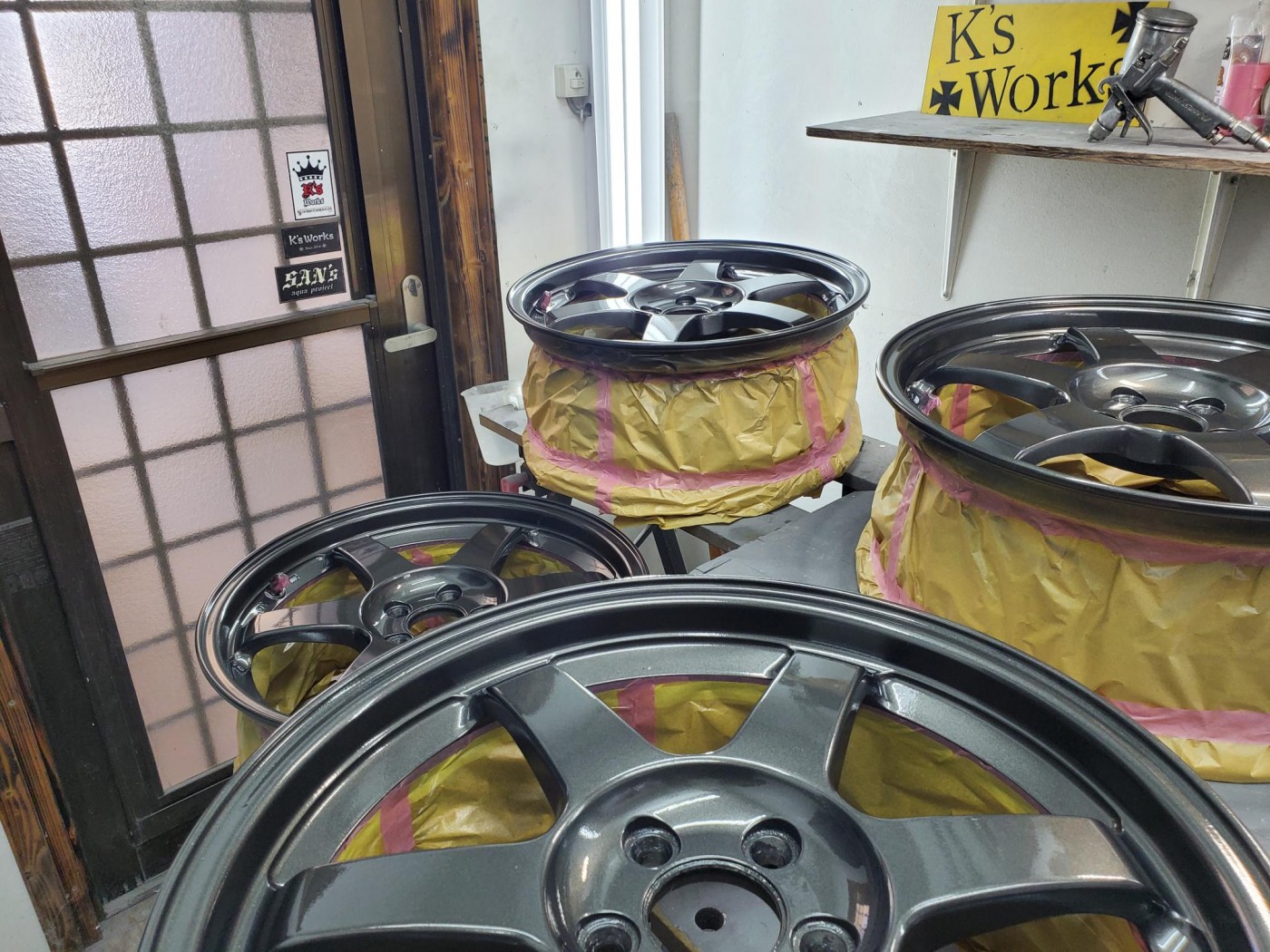お客様ご自身でリペアされたRAYSのホイールを全体的な傷補修とガンメタにカラーチェンジのご依頼をいただきました。