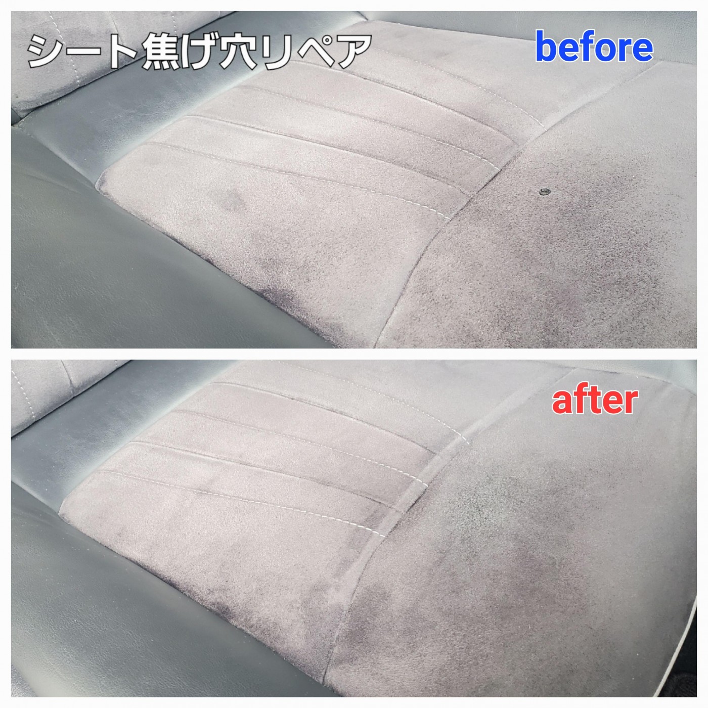 シートの座面にタバコによる焦げ穴が出来てしまって お困りのお客様よりリペアのご依頼をいただきました。