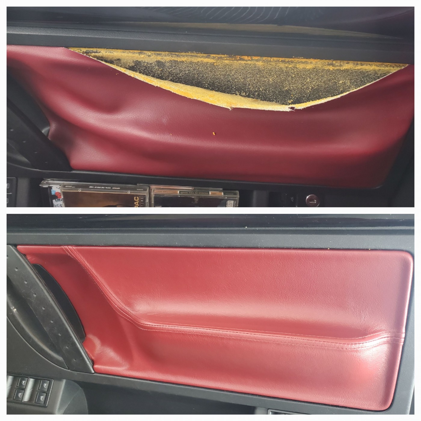 輸入車に多い経年劣化による表皮剥がれでお困りのお客様より、レザー生地の張替えのご依頼を頂きました。