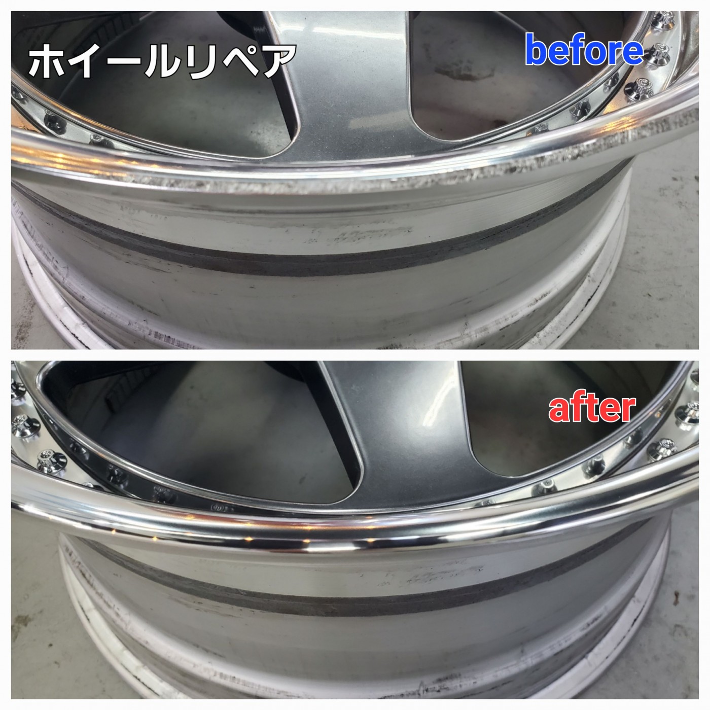 がり傷がすっかり無くなり綺麗になったホイールの仕上がりにとてもお喜びになられてよかったです。