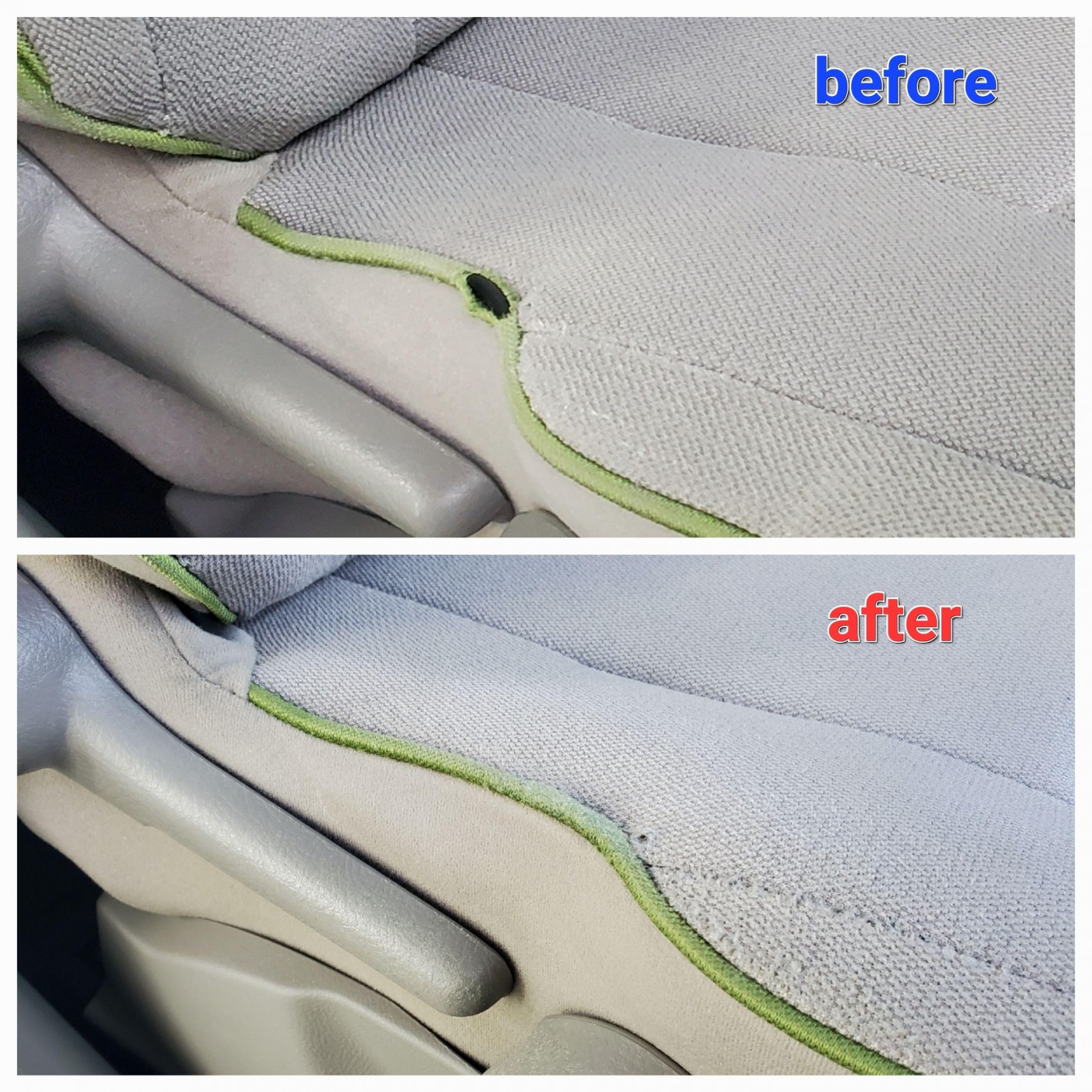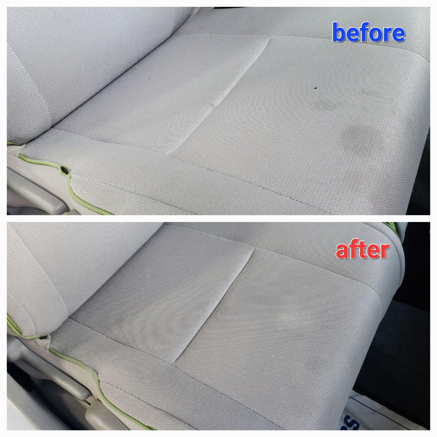 仕入れた車両のシートの座面にタバコによる焦げ穴が出来てしまっていて お困りの自動車販売店様より出張施工のご依頼をいただきました。