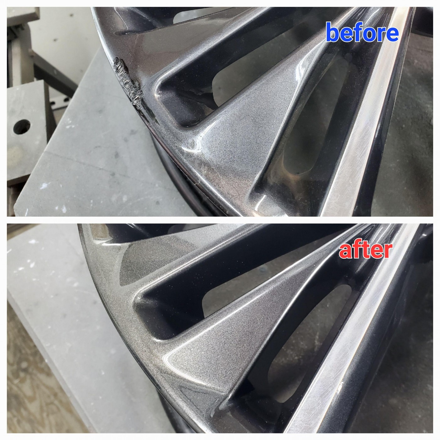 トヨタ純正のダイヤカットとガンメタのホイールでスポーク部のがり傷でお困りのお客様よりリペアのご依頼をご依頼をいただきました。