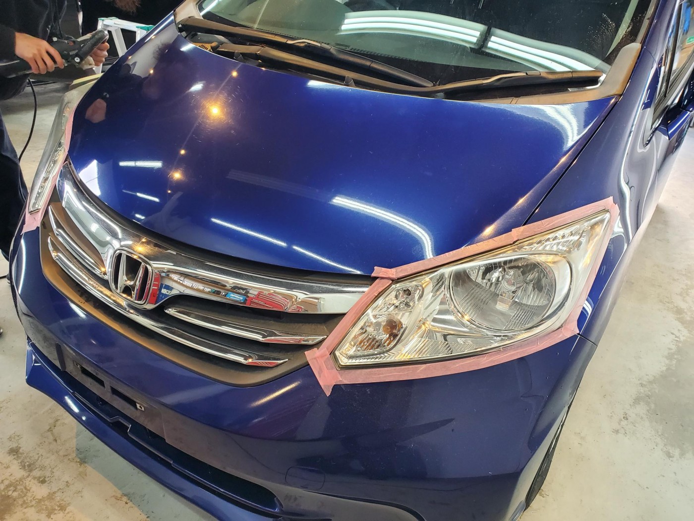 先ずは、表面のハードコートをサンディングして黄ばみ、くすみ、細かな擦り傷をしっかり取り除き、そこから磨き仕上げして最後に皮膜材を塗り込んで施工完了!