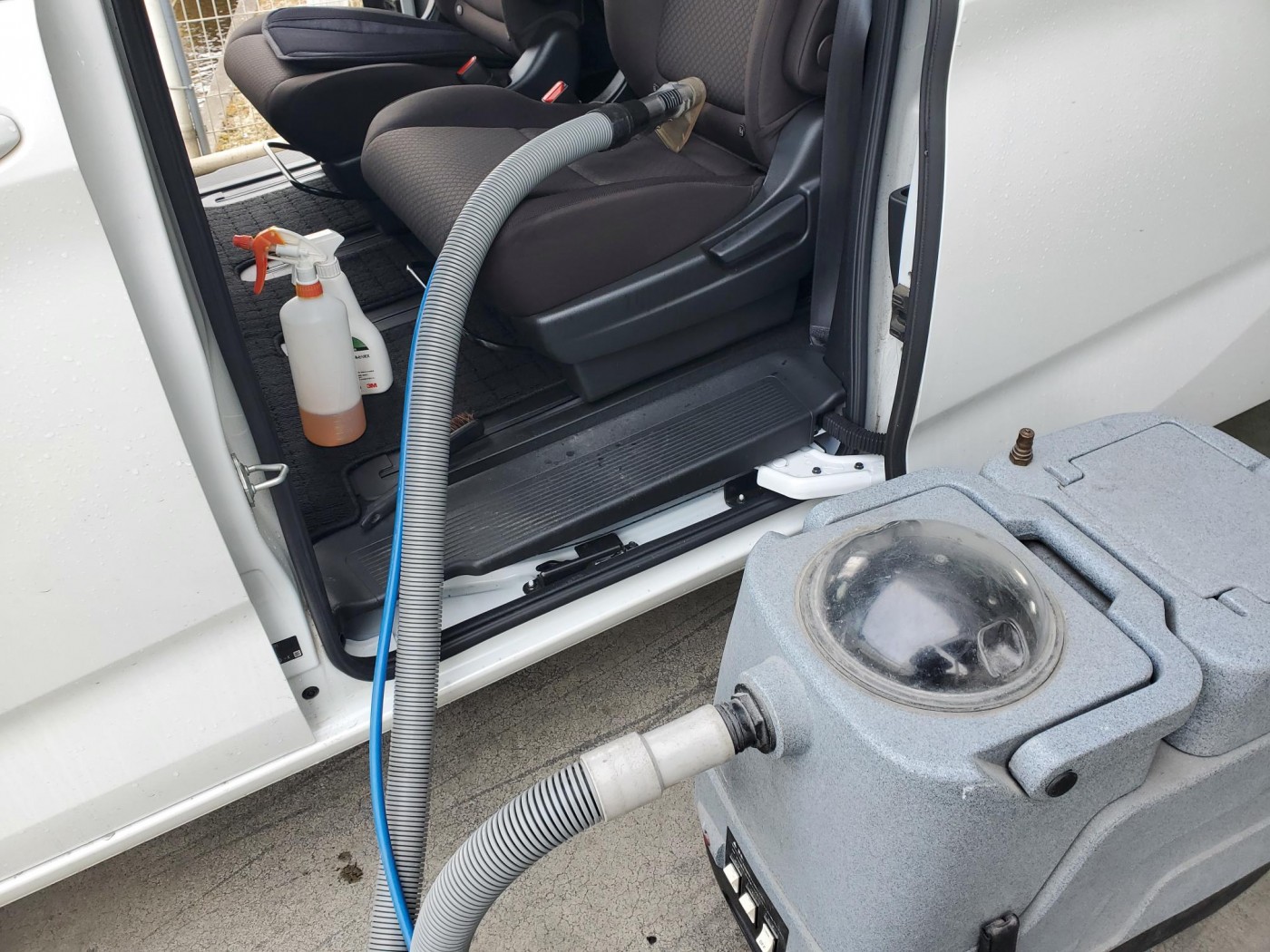 汚れてしまったシートを専用のクリーナーでブラッシングしてから、80℃の温水スチームでクリーニング洗浄しながらの吸引で隅々までクリーニングしてリフレッシュ!