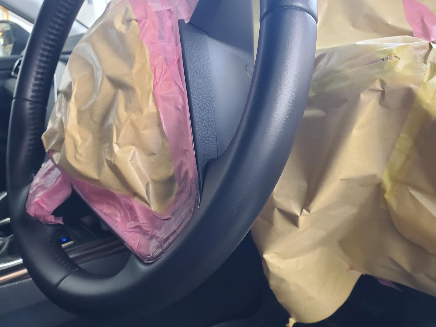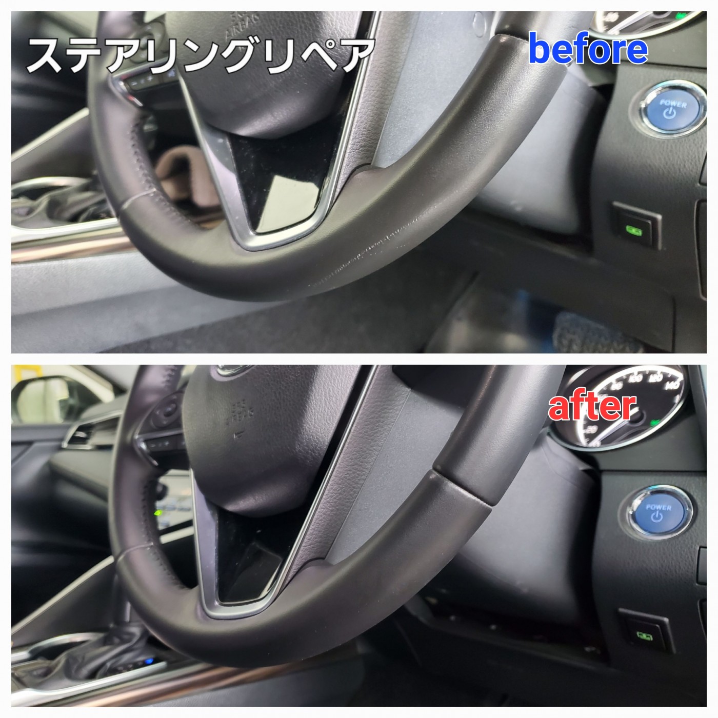 運転中にステアリングに引っかき傷をつけてしまいお困りのお客様よりリペアのご依頼をいただきました。