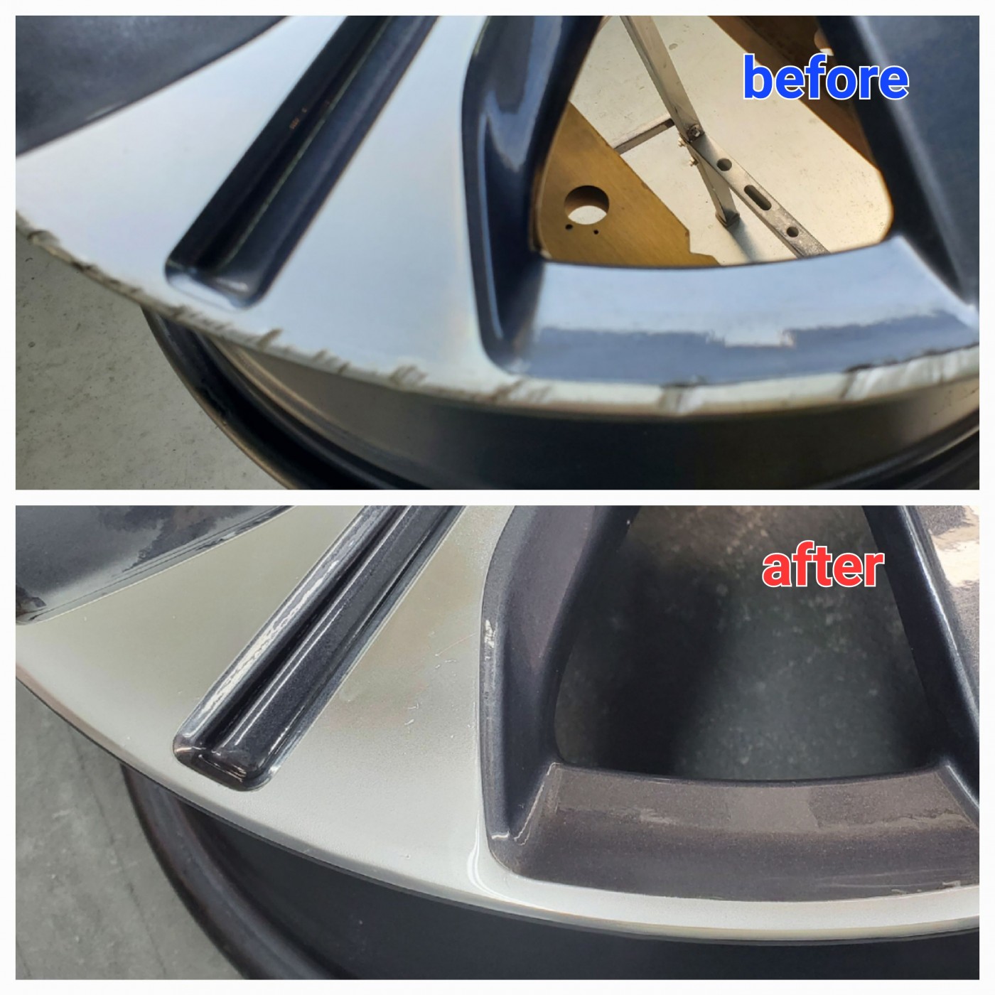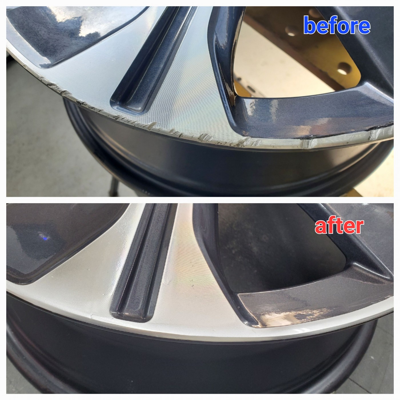 縁石に寄せすぎてガリ傷を付けてしまったお客様からのご依頼で、ダイヤカット仕上げ部分のがり傷のリペアをご依頼いただきました。