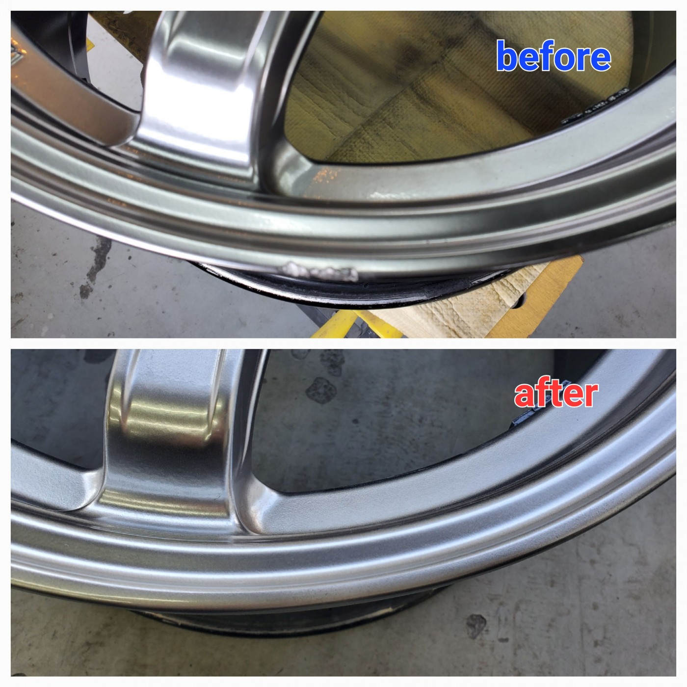 SSRのハイパーシルバーのホイールでリム部のがり傷でお困りのお客様よりリペアのご依頼をご依頼をいただきました。