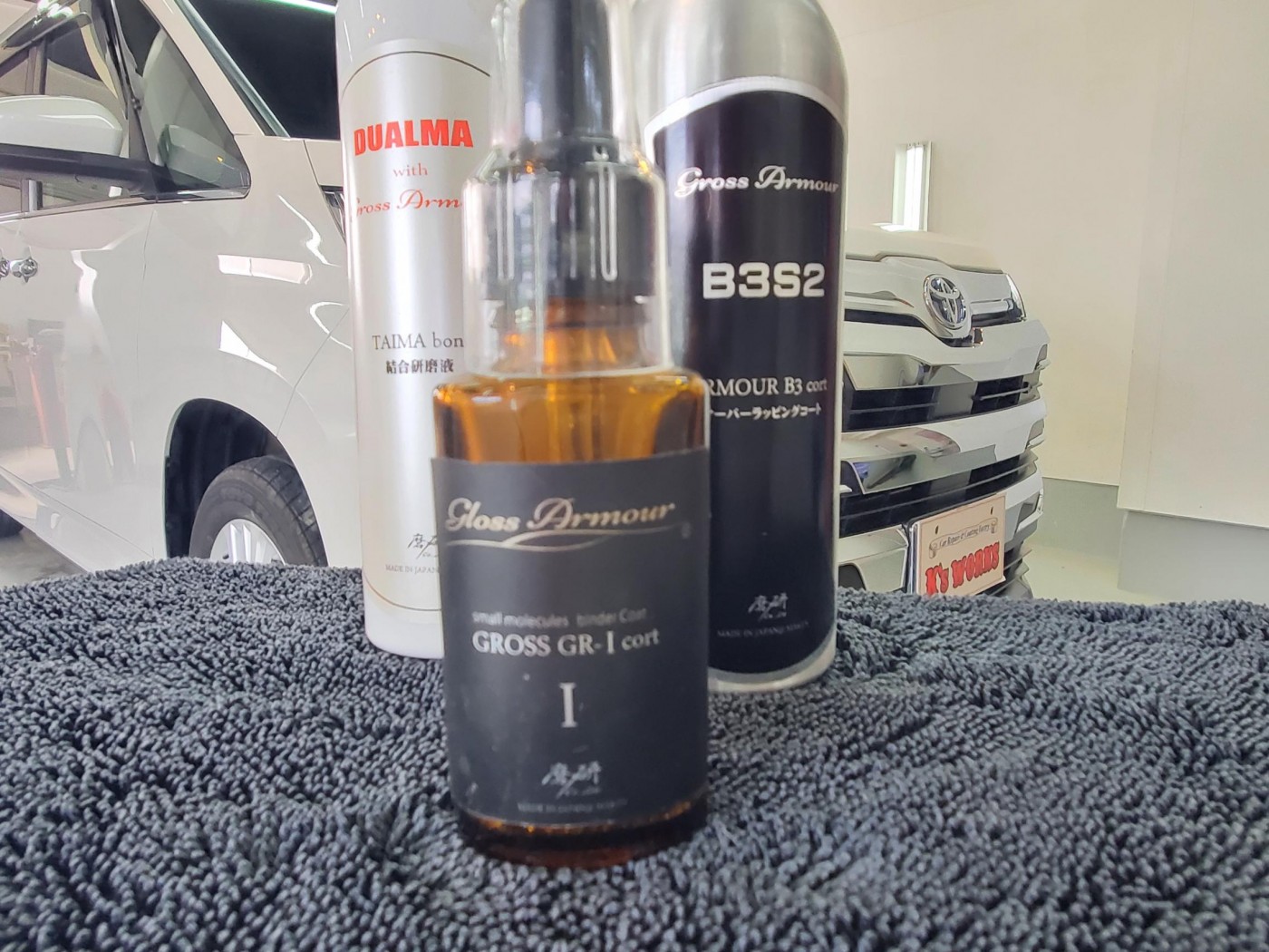 先ず初めに、ボディークレンジングからのボディー磨きにて雨染みや洗車傷をリセットして、TAIMA(コーティング結合研磨液)にて下地処理をしっかりと施工してから、ガラスコーティングのグロスアーマーを塗り込みして施工完了!