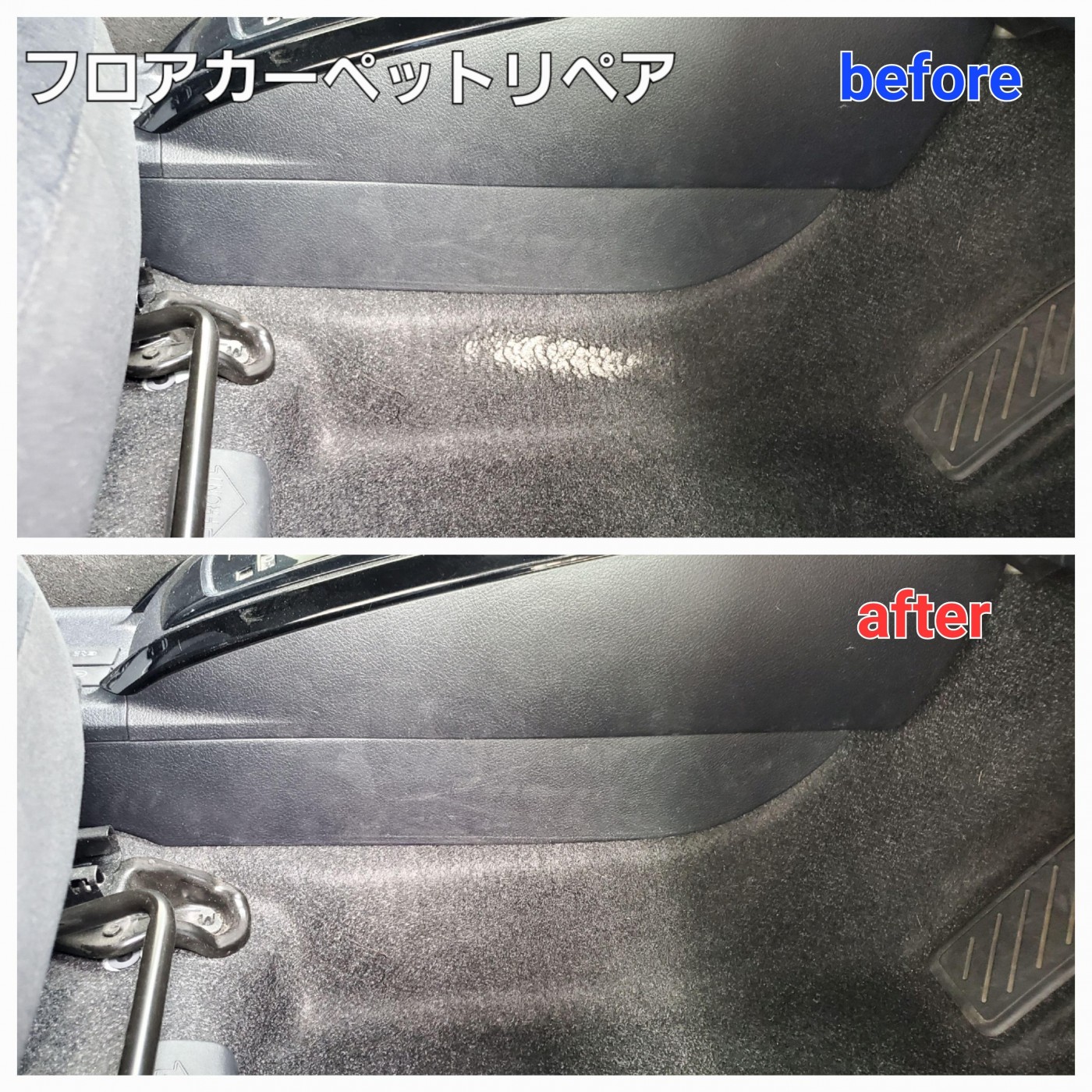 仕入れた車両のフロアカーペットが、擦り切れていてお困りの自動車販売店様よりリペアのご依頼をいただきました。