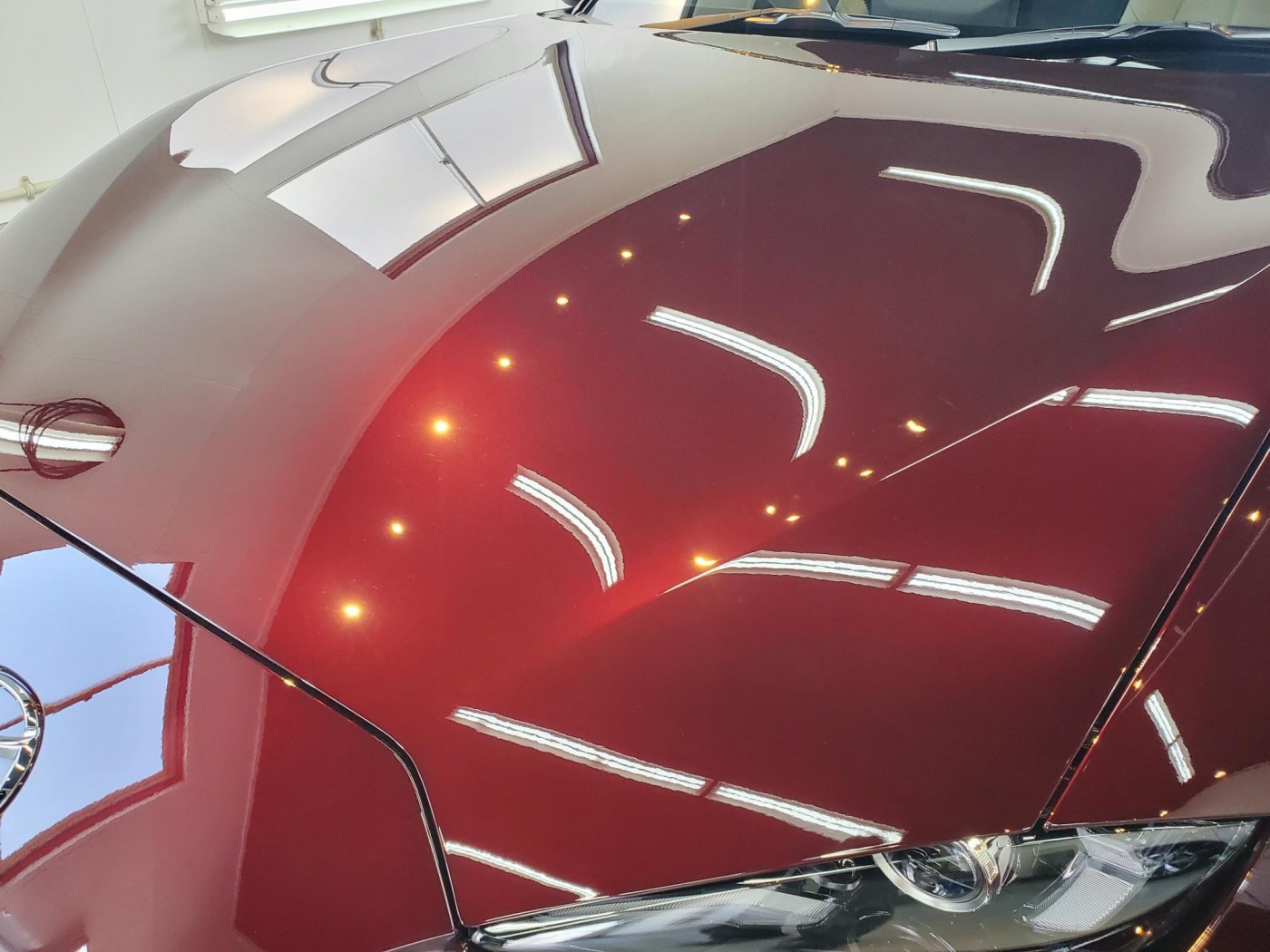 先ず初めに、ボディークレンジングからのボディーの軽研磨にて新車にも付いてしまってる僅かな線傷等をリセットして、TAIMA(コーティング結合研磨液)にて下地処理をしっかりと施工してから、ガラスコーティングのグロスアーマーを塗り込みして施工完了!
