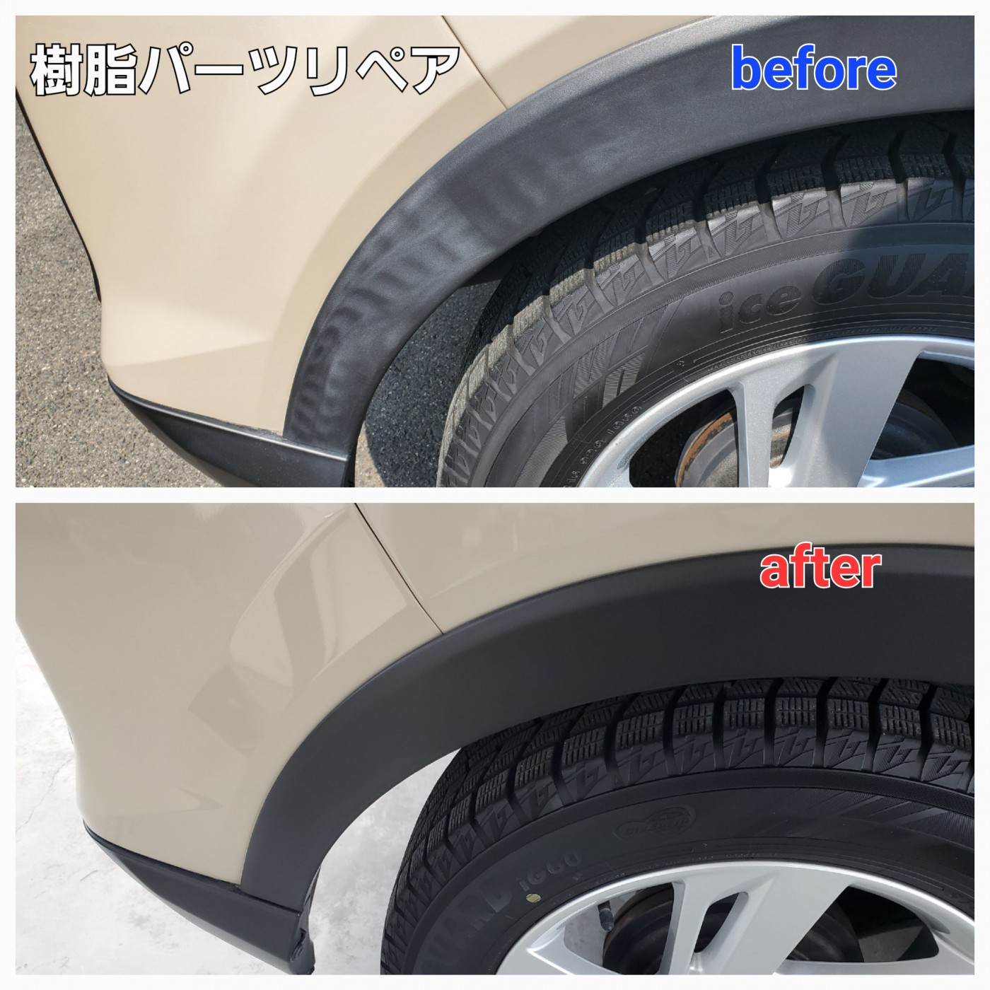 樹脂パーツ部の付着物や汚れをしっかりとクリーニングした後に、専用のリペア剤を塗り込みして作業完了!!