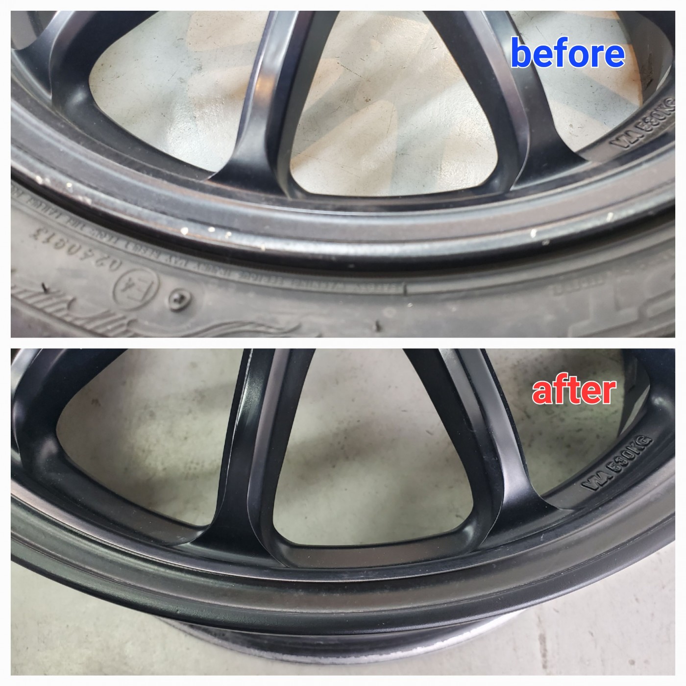 RAYSのマットブラックのホイールのガリ傷でお困りのお客様よりリペアのご依頼をご依頼をいただきました。
