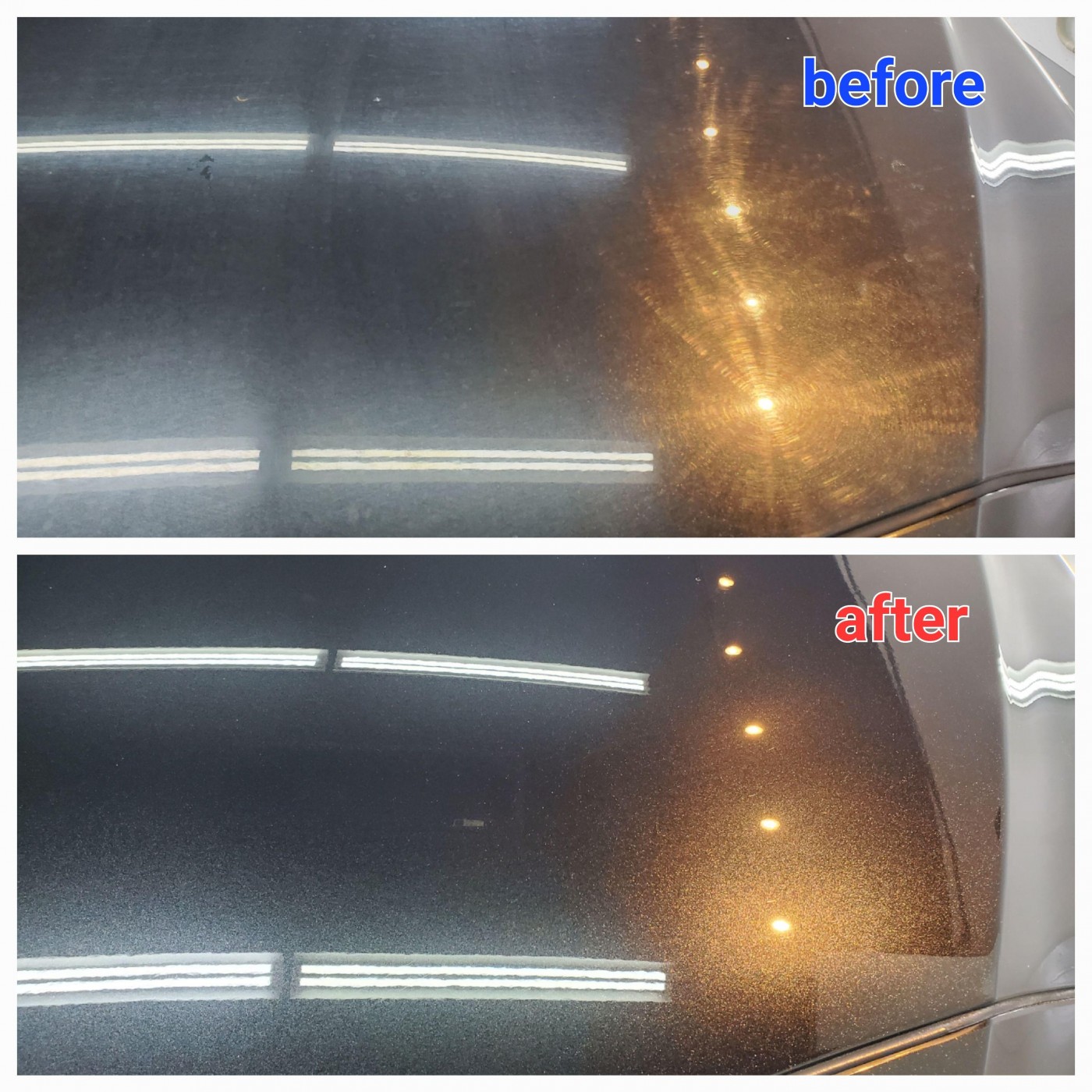 愛車のボディーに付着した雨染みや洗車傷等で、塗装面が白化してしまってお困りのお客様よりご依頼をいただきました。