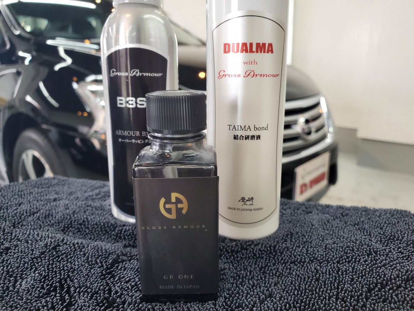 先ず初めに、ボディークレンジングからのボディー磨きにて雨染みや洗車傷をリセットして、TAIMA(コーティング結合研磨液)にて下地処理をしっかりと施工してから、ガラスコーティングのグロスアーマーを塗り込みして施工完了!
