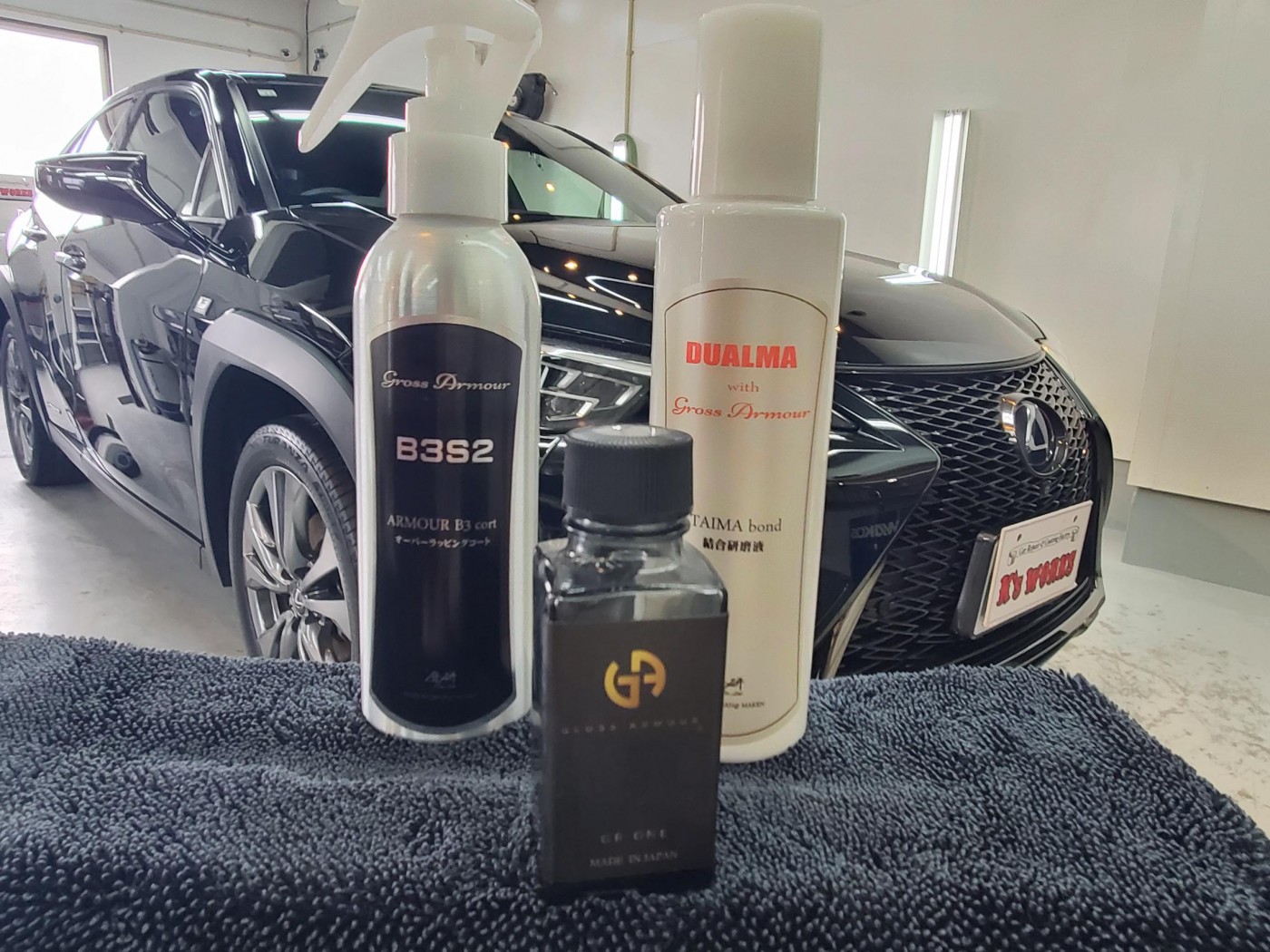 先ず初めに、ボディークレンジングからのボディー磨きにて雨染みや洗車傷をリセットして、TAIMA(コーティング結合研磨液)にて下地処理をしっかりと施工してから、ガラスコーティングのグロスアーマーを塗り込みして施工完了!